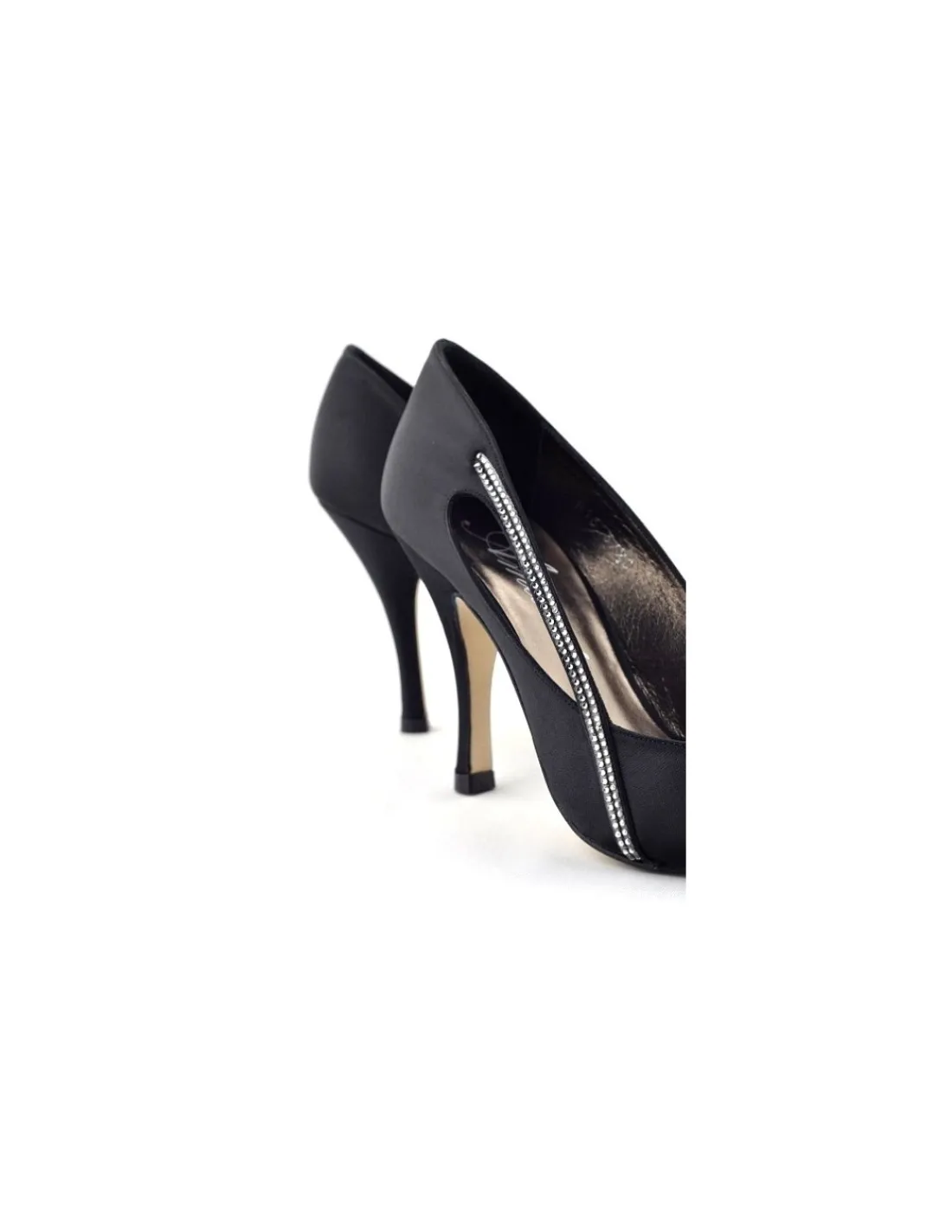 Obcasy to szpilki w stylu Marlyn Monroe, obłożone tą samą, czarną satyną , z której wykonana została cała para tych szpilek . Są lekko cofnięte, w stosunku do linii pięty co gwarantuje najlepsze oparcie środka ciężkości i wyjątkową stabilność. Świetnie wyprofilowane – zdecydowanie wydają się być komfortowe dla większości kobiet, pod warunkiem , że nie są to pierwsze w życiu szpilki. Te maja 7 cm, a na taką wysokość prawdopodobnie zgodziłby się nawet ortopeda ( oczywiście ten bardziej wyrozumiały ).