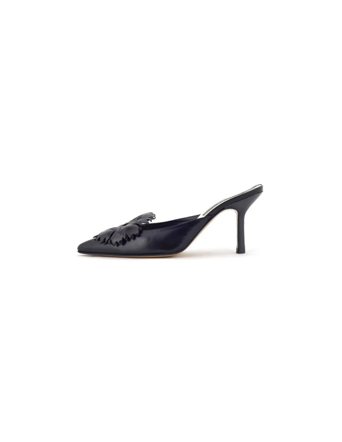 Niebanalna efektowna kobieca linia mules. Zarówno okazjonalne nawet wieczorowe, na specjalne okazje i spotkania – eleganckie i równocześnie codzienne. Niezależnie od przeznaczenia na stopach prezentują się delikatnie i kobieco zarazem przyciągając uwagę. Minimalistyczne w formie, niebanalne w doborze materiałów z dużym wyciętym ze skóry kwiatem.