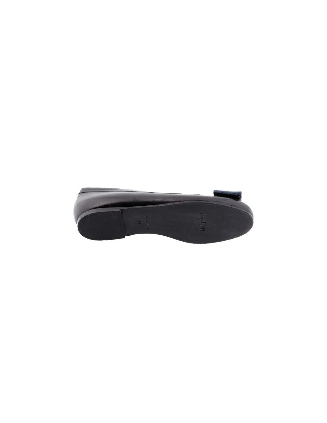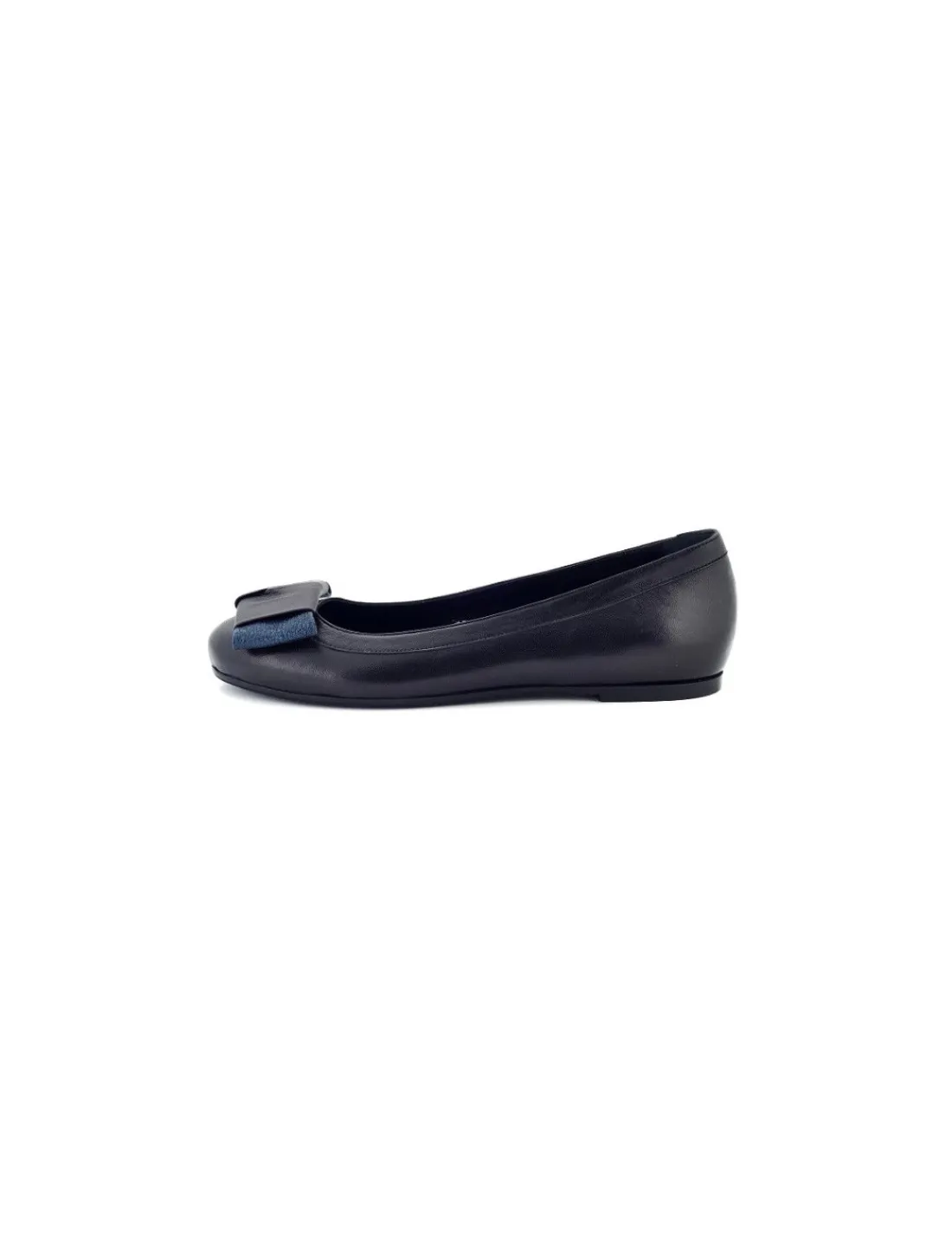 Te zostały wykonane z najwyższej jakości, miękkiej skóry nappa w kolorze czarnym. Dodatkowym ciekawym elementem jest ozdoba w formie płaskiej kokardy, wykonana ręcznie z tej samej mięciutkiej skóry połączonej z granatową skórą metaliczną – bardzo delikatnie odbijającą światło. Wewnątrz wyściółki i futrówki wykonano ze skóry cielęcej. Zelówki wykonano z cienkiej logowanej gumy . Ten rodzaj wykończenia sprawia, że świetnie amortyzują nierówności miejskich chodników, nie chłoną też wilgoci. Obcasik maleńki, w zasadzie fleczek. Wykonany z tego samego tworzywa co zelówki. Oczywiście po zużyciu wymienialny w profesjonalnym zakładzie szewskim.
