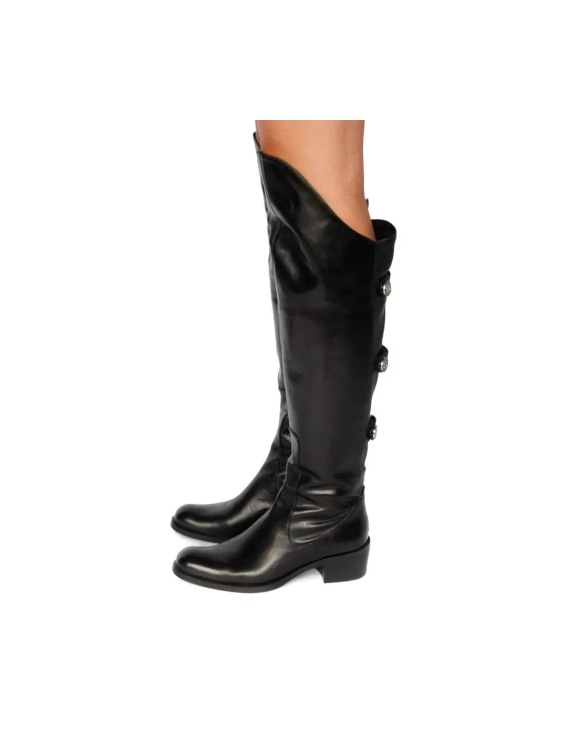 Niedostępne w komercyjnej ofercie, wyprodukowane na nasze zamówienie, piękne kozaki z zacięciem na muszkieterki, z doskonałej skóry. Unikatowe sprowadzone w limitowanej, krótkiej serii. Zaprojektowane i wykonane perfekcyjnie. Prezentują się na nogach efektownie, przyciągają uwagę i wzrok i to nie tylko kobiet, więc trudno przebiec w nich niezauważoną.