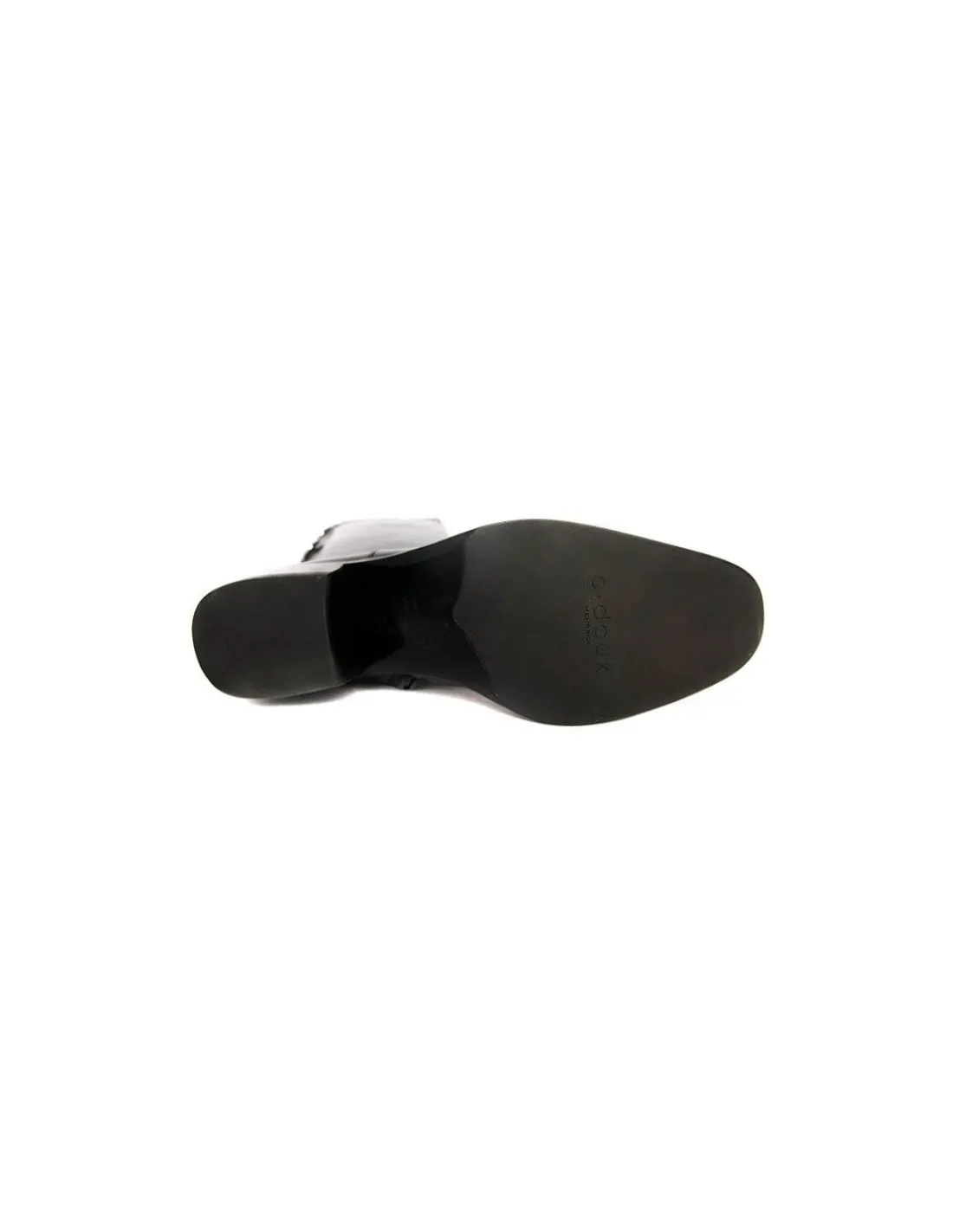 Obcasy wyodrębnione niewysokie w formie klocków w czarnych skórzanych obłogach. Idealnie wyprofilowany skłon. Zelówki skórzane, pod śródstopiem gumowa, logowana, zabezpieczająca wstawka.