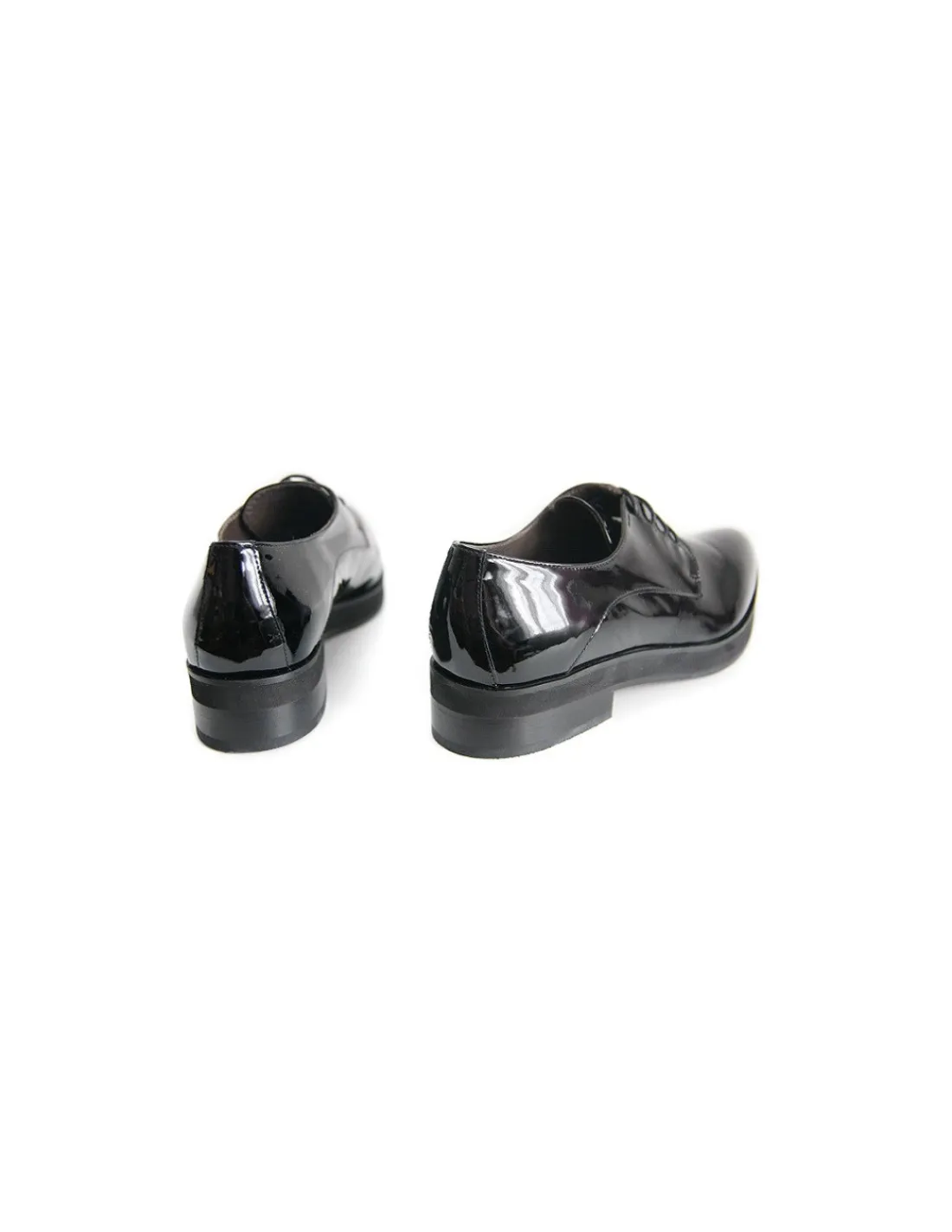 Półbuty ze skóry lakierowanej z charakterystycznym dla modelu derby sznurowaniem z patkami na 4 dziurki. Efektownie prezentujące się na stopach. Forma butów ergonomiczna, zakończona noskami w zdecydowany szpic. Są one usztywnione, podniesione i efektownie uformowane. Mają one charakter modowy i uwzględniają ergonomię stóp i odpowiedni rozmiar.