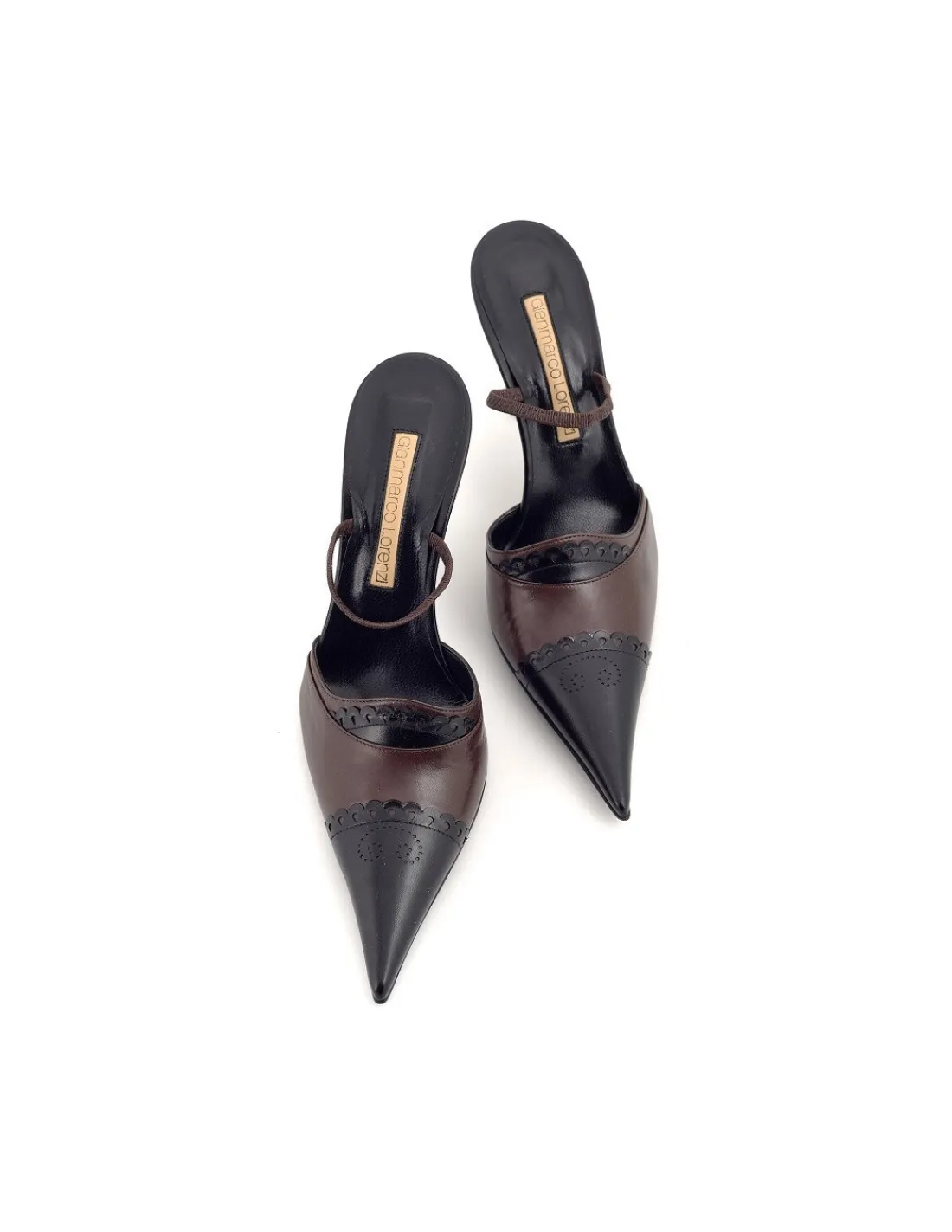 Taki zabieg optycznie skraca wysmuklenie tej formy klapek. Dodatkowo każdy kawałek skóry został wykończony laserowo wyciętym w skórze koronkowym wzorem – nie mogą być „zwykłe” w końcu to GIANMARCO LORENZI. Taka forma obuwia daje świetne wysmuklenie stóp, podnosi sylwetkę i wbrew wszelkim pozorom lub krążącym stereotypom takie szpilki doskonale prezentują się również na pełnych stopach.