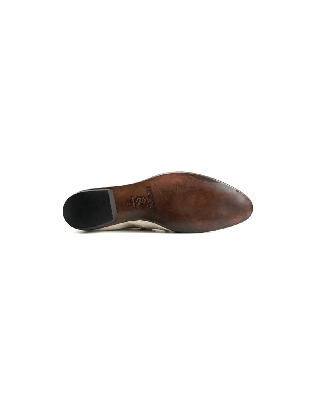 Ergonomiczna forma z wyraźnie zaznaczonymi i podkreślonymi, migdałowymi noskami. Zelówki w całości skórzane z wyodrębnionymi, płaskimi, również skórzanymi obcasami z gumowymi flekami.
