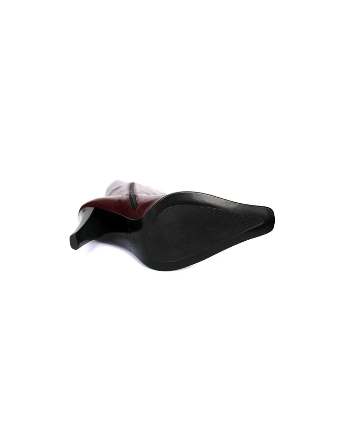 Kozaki wykonane z najwyższej jakości skóry cielęcej w kolorze bordo. Jest bardzo miękka i elastyczna, polerowana z połyskiem. Na wysokości podbicia, wstawka ze skory zamszowej również w kolorze bordo. Jest to bardzo przemyślany zabieg – w tym newralgicznym miejscu większość z nas ma potrzebę większej elastyczności, miękkości – to właśnie gwarantuje łatwo poddający się podczas chodu zamsz.