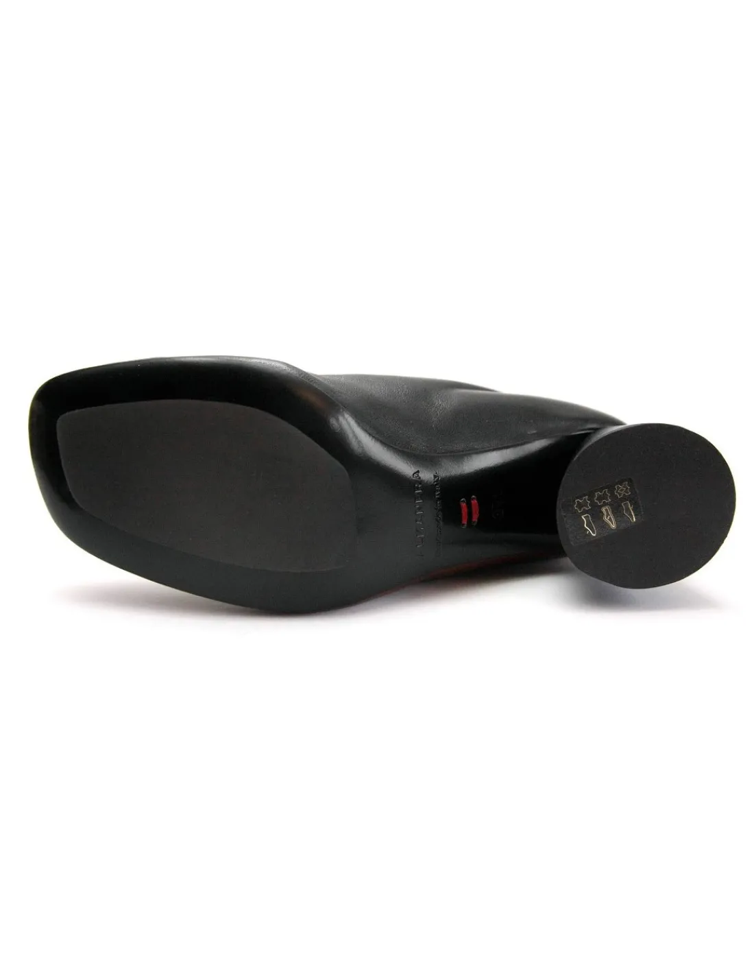 Forma okrągła, ergonomiczna dość szeroka. Wewnątrz botki są w całości skórzane, czyli zarówno wkładki jak i futrówki. Zelówki skórzane z fabrycznie montowaną gumową wstawką ochraniającą przed ścieraniem i wilgocią.