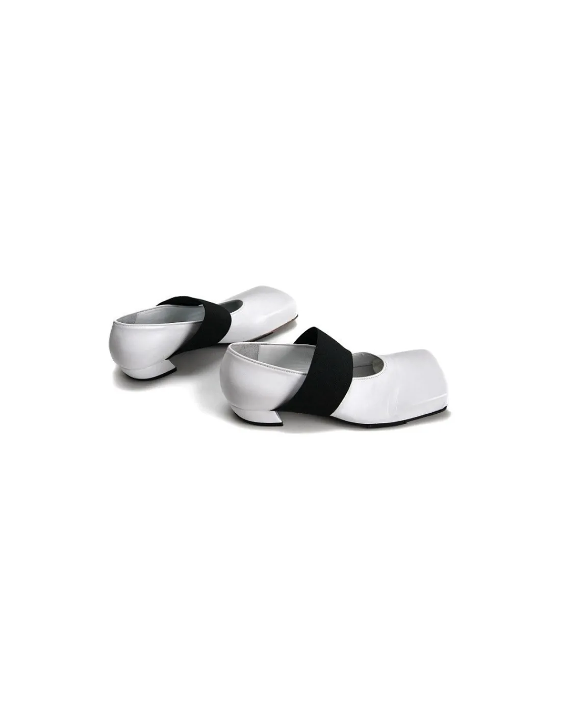 Absolutnie unikatowe, przemyślane w detalach, wytwarzane w ogromnej części rękami rzemieślników. Te półbuty zostały wykonane z najwyższej jakości, miękkiej, aksamitnej w dotyku skóry bydlęcej w białym kolorze. Opaska charakterystyczna dla Mary Jane jest zaprojektowana z szerokiej, czarnej, kontrastującej gumy. Są zdecydowanie stworzone z finezją i to wielką, ale nikt nie zapomniał tu o wygodzie. Noski kwadratowe, szerokie, kanciaste, przerysowane. Z pewnością nie przejdziesz w nich niezauważona. Wewnątrz wkładka i futrówka wykonane z naturalnej cielęcej skóry – niesamowicie miękkiej.