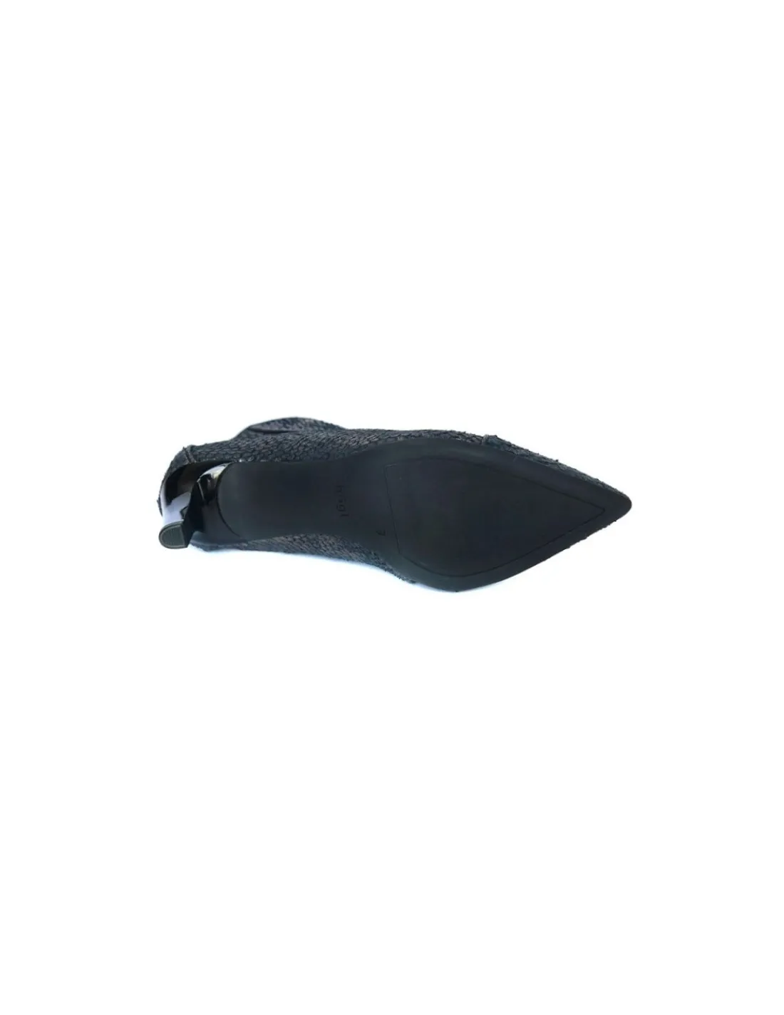 Obcasy osadzono w linii pięty, co optycznie je wydłuża. Faktyczna wysokość absolutnie nie jest odczuwalna dla stóp. Obcasy wykonane są z lakierowanego tworzywa w kolorze czarnym. Wnętrze z naturalnej skóry.