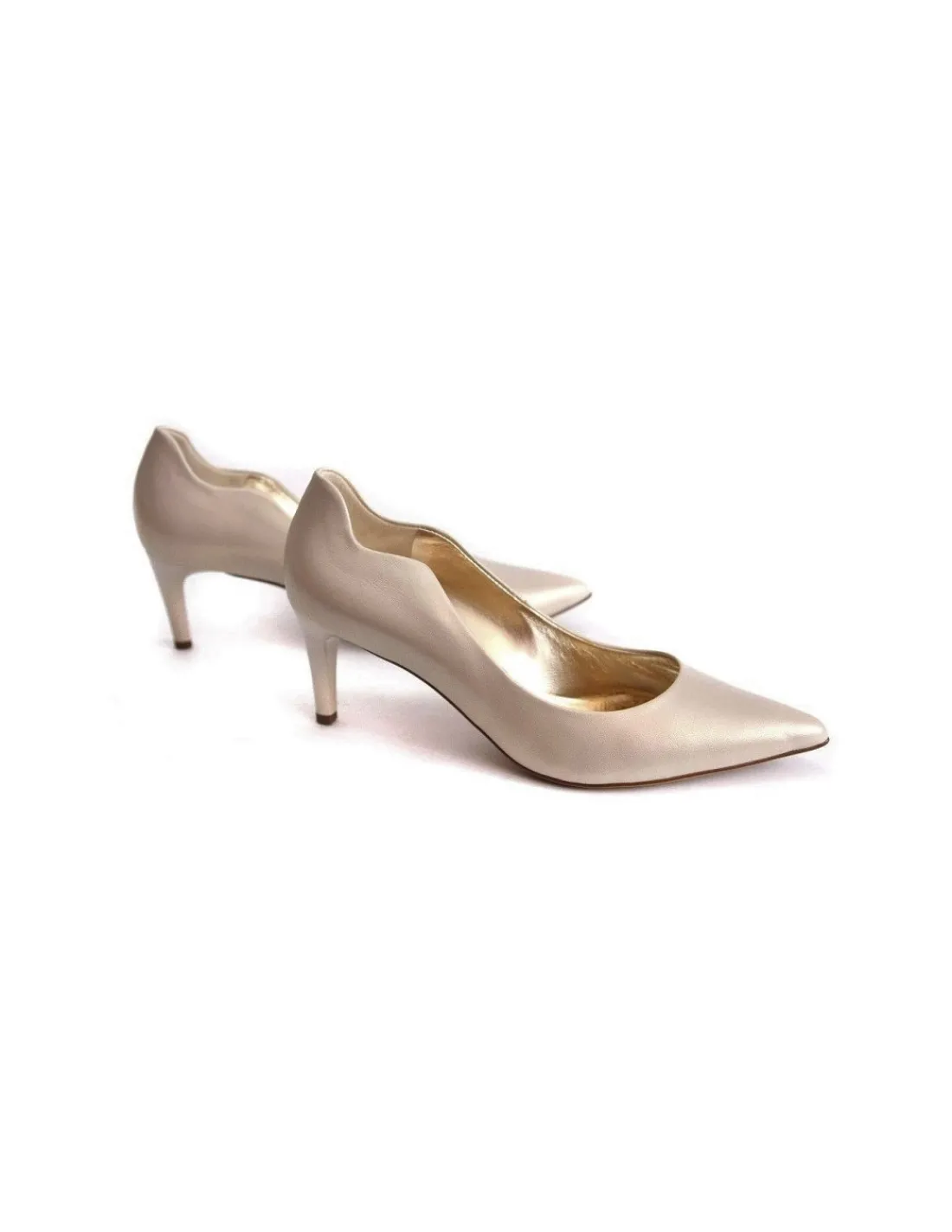 Wykonane z najwyższej jakości skóry licowej w perłowym kolorze ecru. W tym przypadku jakość skóry jest bardzo ważna – ta jest miękka , łatwo dopasowuje się do stóp Klientki są wręcz zachwycone ich wygodą.