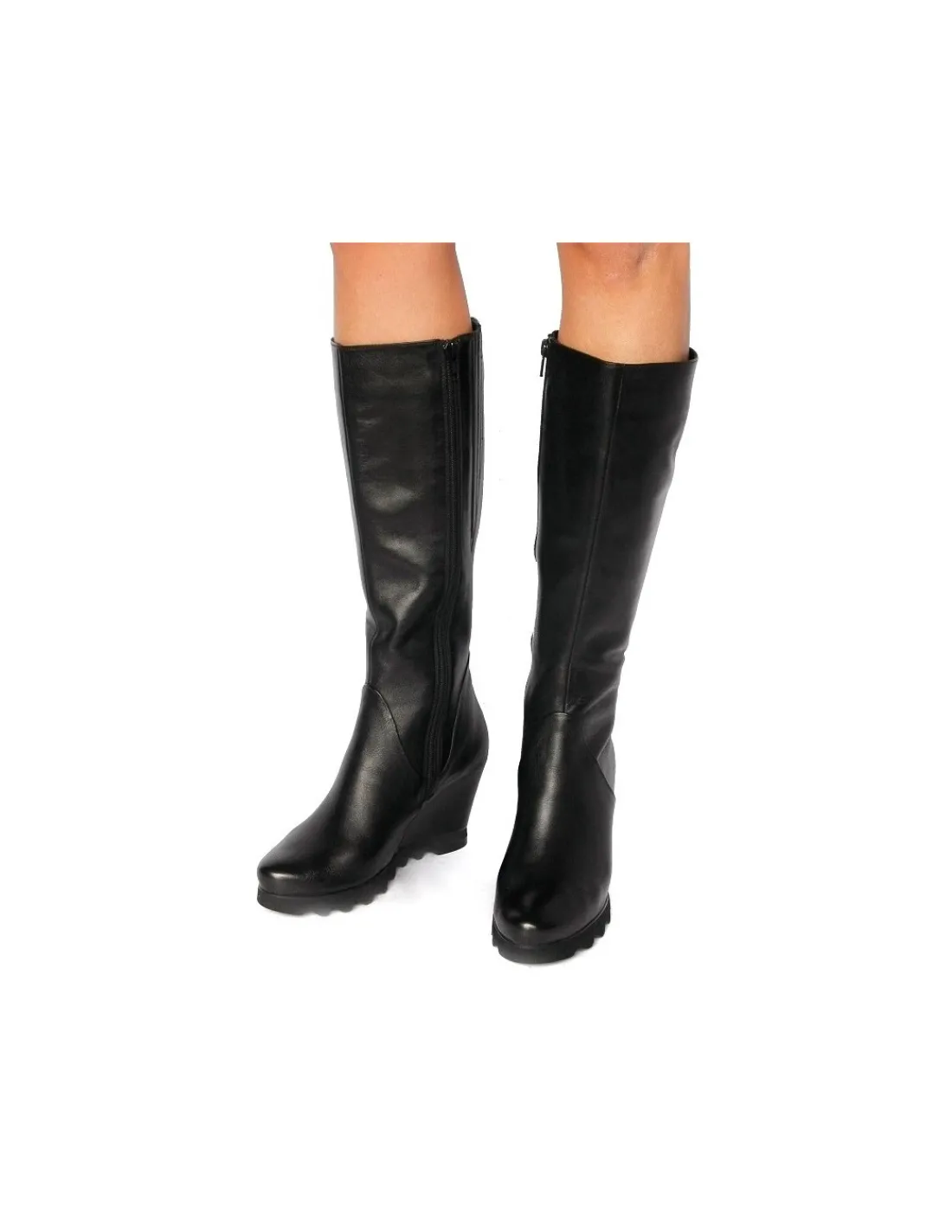 Kozaki wykonane z najwyższej jakości czarnej, mięsistej skóry licowej z widoczną jej strukturą. Buty wykonane są bardzo precyzyjnie, efektownie prezentują się stopach. Proste w linii, pasują do wielu stylizacji.