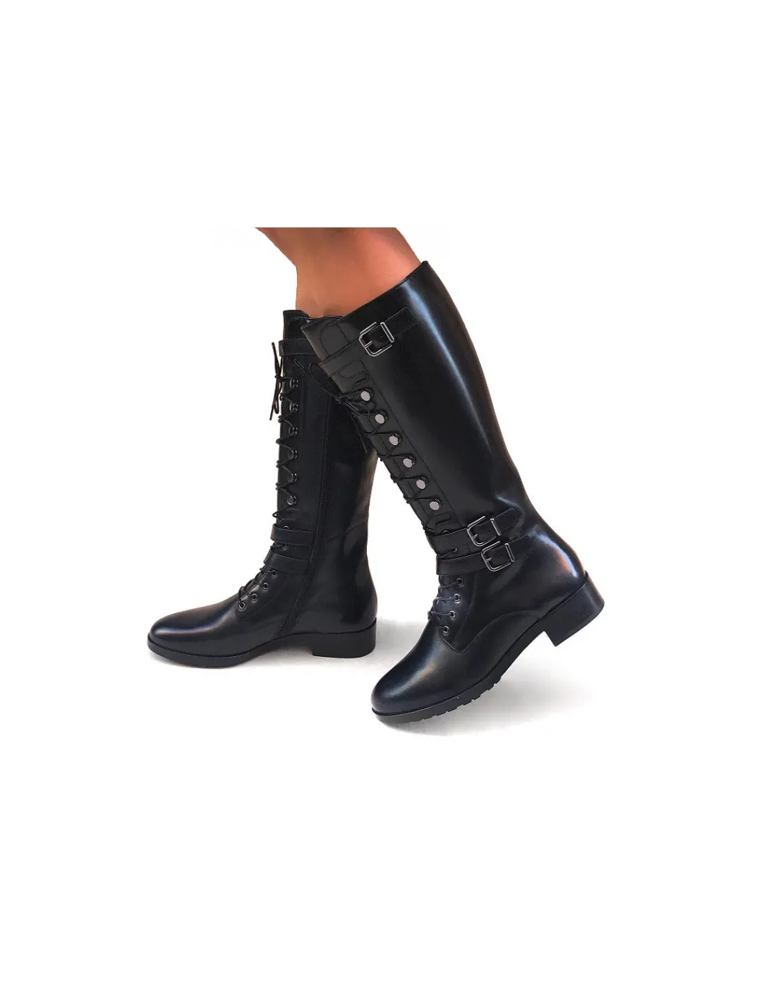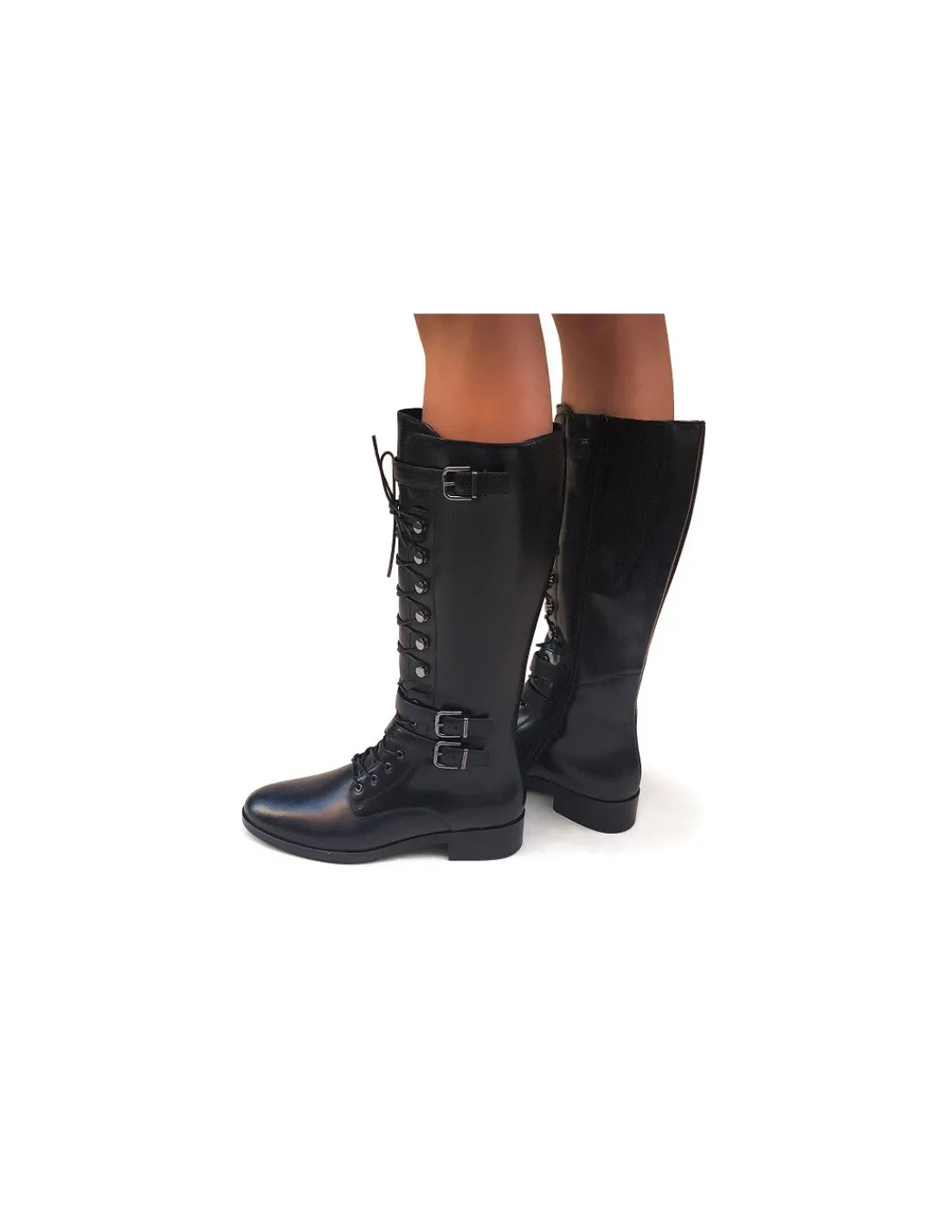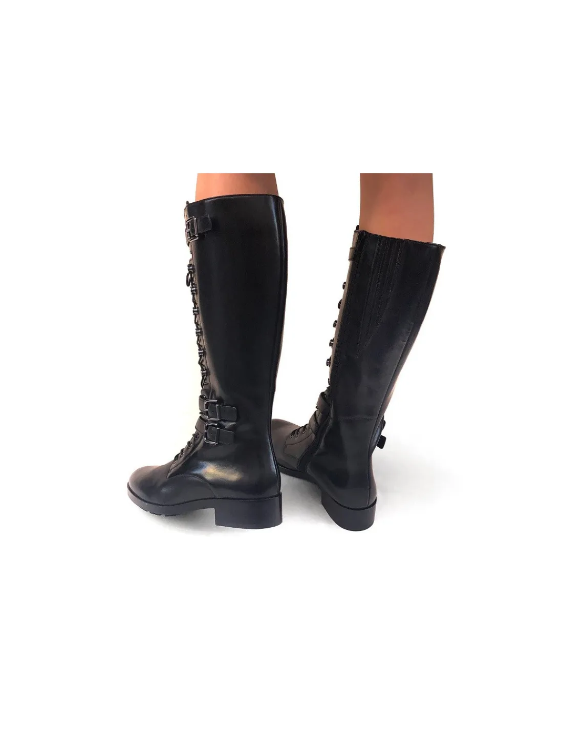 Cholewka zapinana na zamek od strony przyśrodkowej na całej swojej długości. W górnej części obok zamka wszyto estetycznie zamaskowane skórą gumy, które pomagają w jej dopasowaniu do łydki.