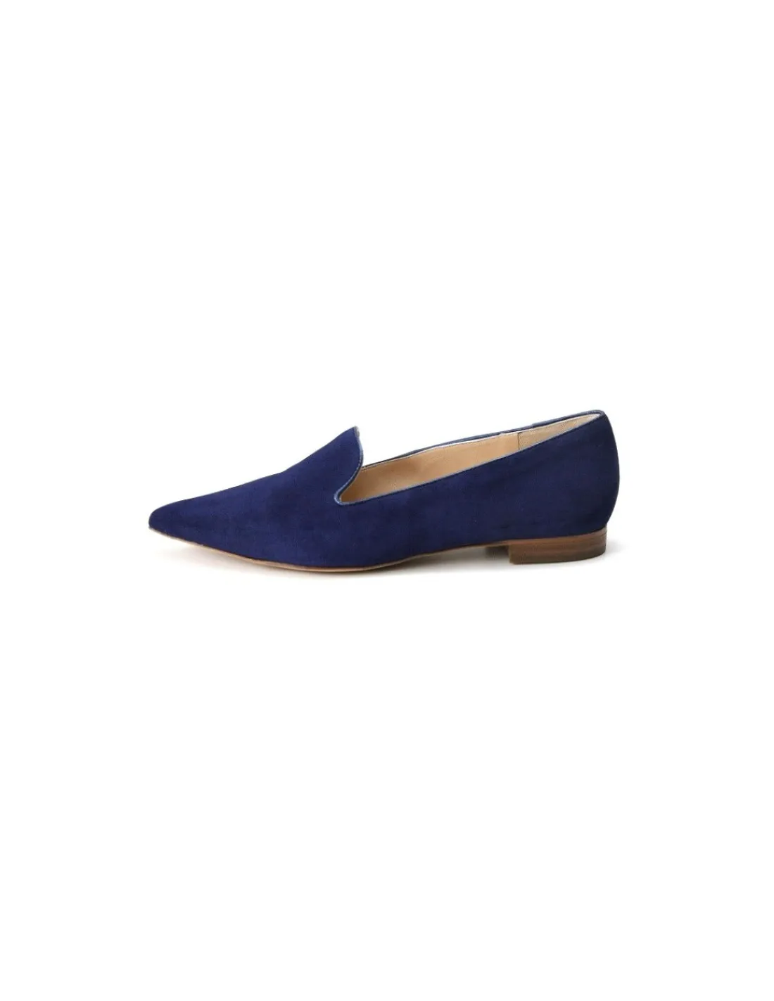 Zostały wykonane z aksamitnej w dotyku skóry zamszowej w kolorze granatowym – piękny, intensywny odcień. Wnętrze wykonano ze skóry cielęcej w naturalnym kolorze. Ten rodzaj skóry jest niesłychanie miękki. Stopa dosłownie zapada się w miękkich skórach. Model ten jest bajecznie komfortowy, elastyczny.