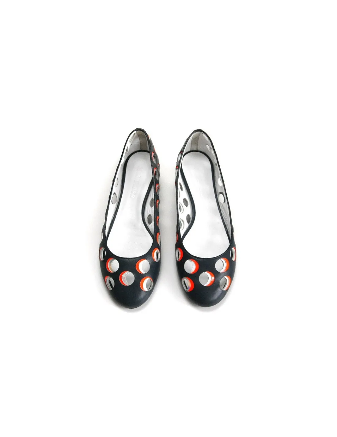 Wewnątrz wkładki i futrówki z białej, bardzo miękkiej skóry. Forma balerinek ergonomiczna z noskami okrągłymi.