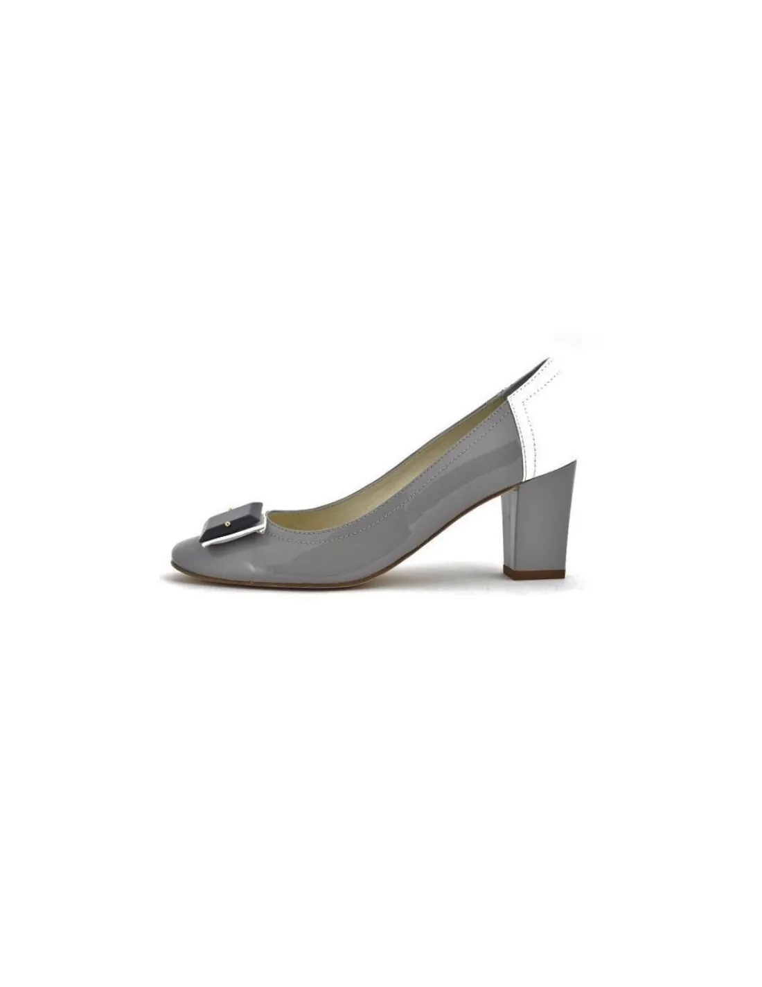 Wykonane z najwyższej jakości, skóry lakierowanej w kolorze jasno – szarym. Na pięcie oraz na nosku wstawki z białej skóry, również lakierowanej. Prezentują się delikatnie i w tym zestawie kolorystycznym mieszczą się w dress code. Pobiegniesz w nich do pracy w instytucjach i firmach, które do tego obligują, a jeśli lubisz ten styl to z przyjemnością pozostaniesz w nich również po pracy.