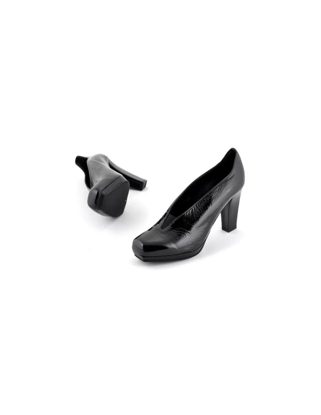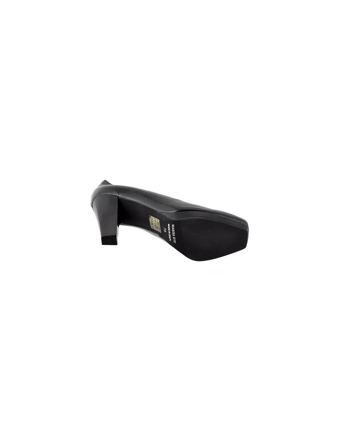 Czółenka pozostające w grupie klasyków. Wykonane z czarnego naplaku, czyli lakieru położonego na luźną, nie naprężoną skórę. Dzięki tej technice buty są bardzo, bardzo miękkie, skóra doskonale pracuje. Wewnątrz wkładki i futrówki z miękkiej naturalnej skóry.