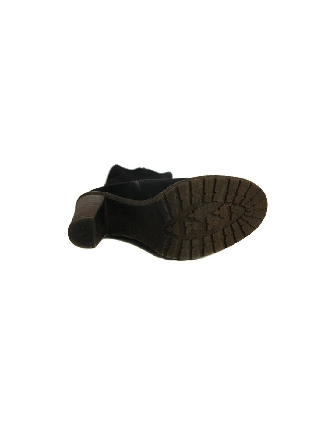 Kozaki wykonane bardzo precyzyjnie z miękkiej, czarnej skóry zamszowej, łatwo układającej się. Bardzo efektownie prezentują się na nogach.