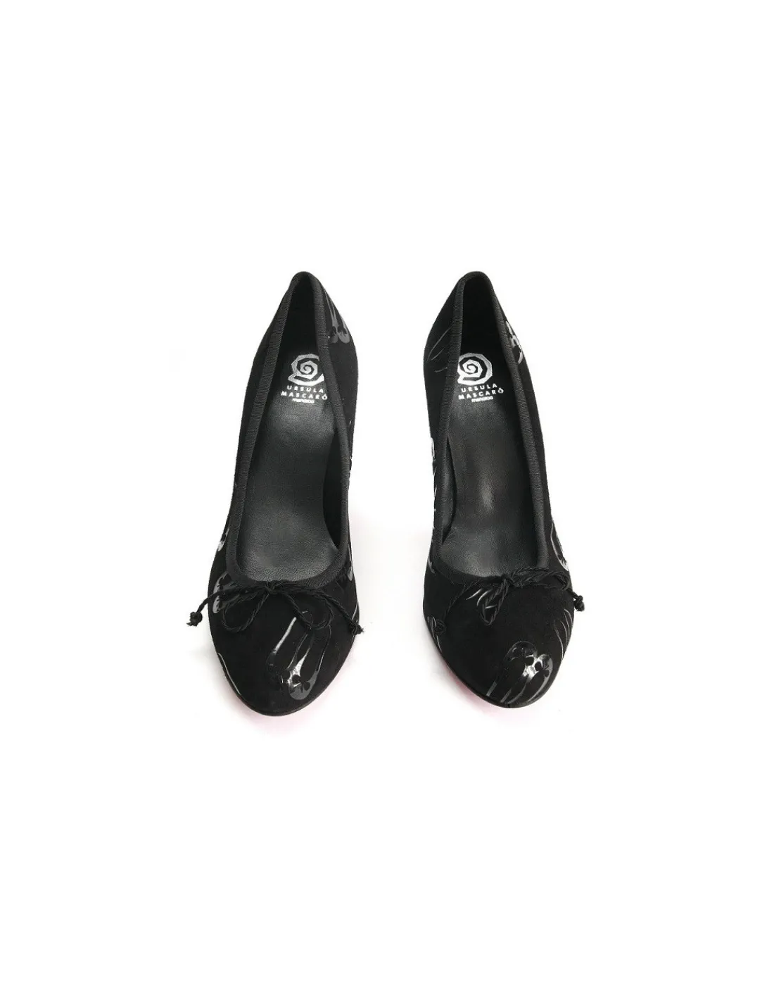 Wykonane zostały z naturalnej skóry zamszowej w czarnym kolorze z tłoczonym lakierowanym logo marki – parą zgrabnych balerinek z połyskiem. Całość dopracowana na najwyższym poziomie przez mistrzów sztuki szewskiej – w tym przypadku z manufaktury „Ursula Mascaro”. Wewnątrz wkładki i futrówki wykonano z naturalnej skóry w czarnym kolorze. Forma nosków okrągła wysoko podniesiona bardzo zgrabna, zbliżona kształtem do balerinek, które z łatwością mieszczą palce stóp. Przód ozdobiony sznurkową, czarną kokardką – jak przystało na Pretty Ballerinas. To w zasadzie już stało się znakiem rozpoznawczym marki.