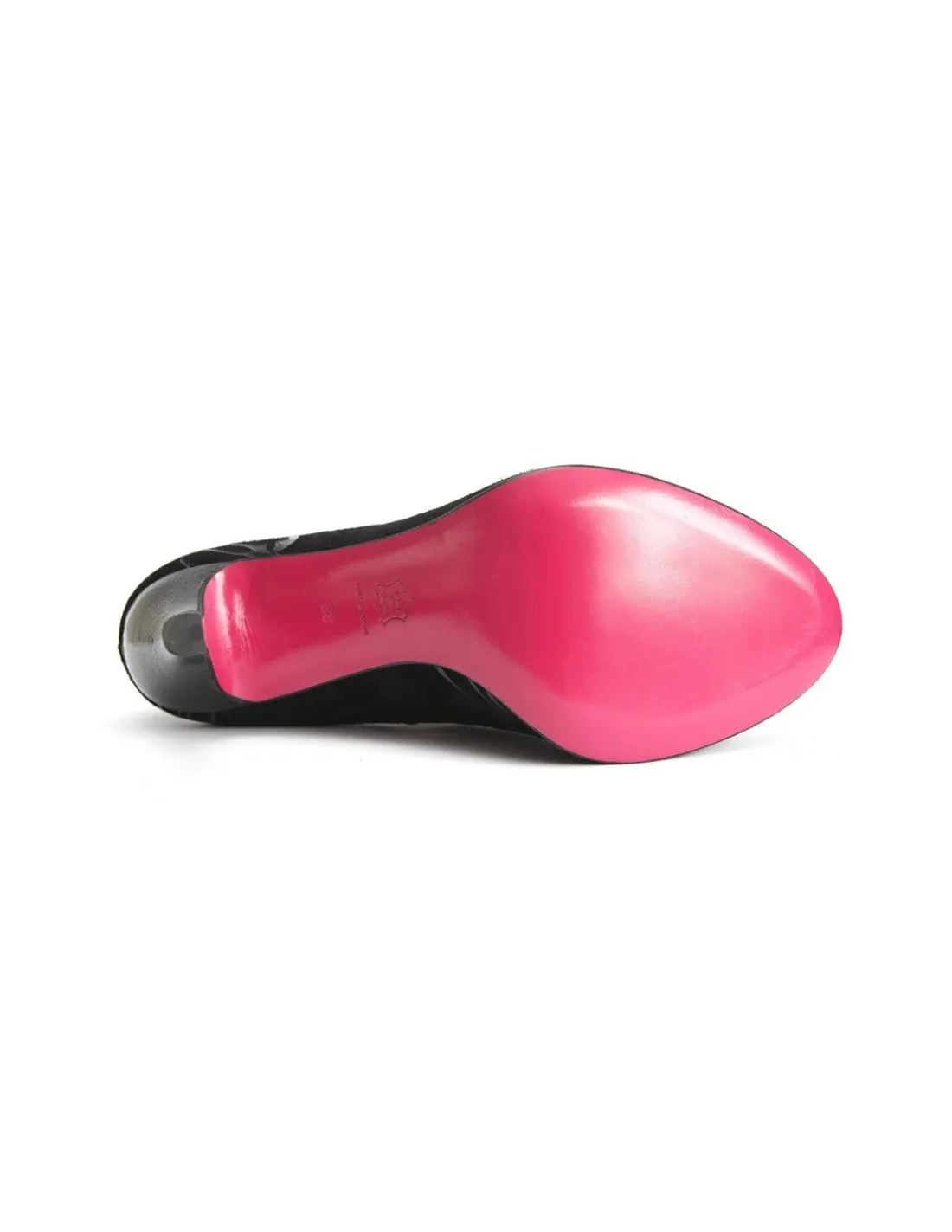 Wewnątrz cholewek ukryto platformę w wysokości ok. 1,5 – 2 cm, która niweluje odczuwalny skłon stóp przy takiej wysokości obcasów. Kopyto jest świetnie wyważone i komfortowe. Obcasy zostały obłożone czarną skórą lakierowaną. Zelówki różowe ! skórzane , a to absolutnie wyższa półka. Stopy mają lepszą wentylację, „oddychają” co podnosi komfort ich użytkowania.