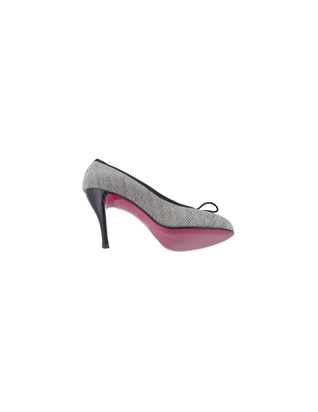 Wykonane zostały z tkaniny żakardowej w drobniutkie, czarno – białe paseczki. To nie są tkaniny ubraniowe, zatem nie obawiajcie się o ich trwałość ! Tkaniny przeznaczone do produkcji obuwia są precyzyjnie dopasowane, zabezpieczone i całość dopracowana na najwyższym poziomie przez mistrzów sztuki szewskiej – w tym przypadku z manufaktury Ursula Mascaro.
