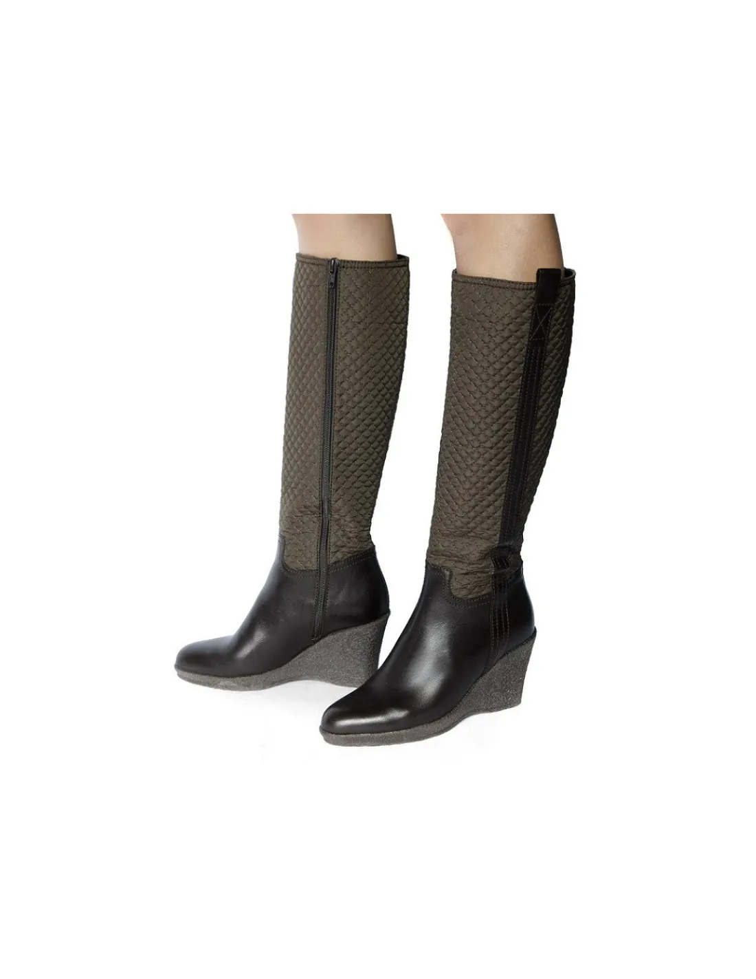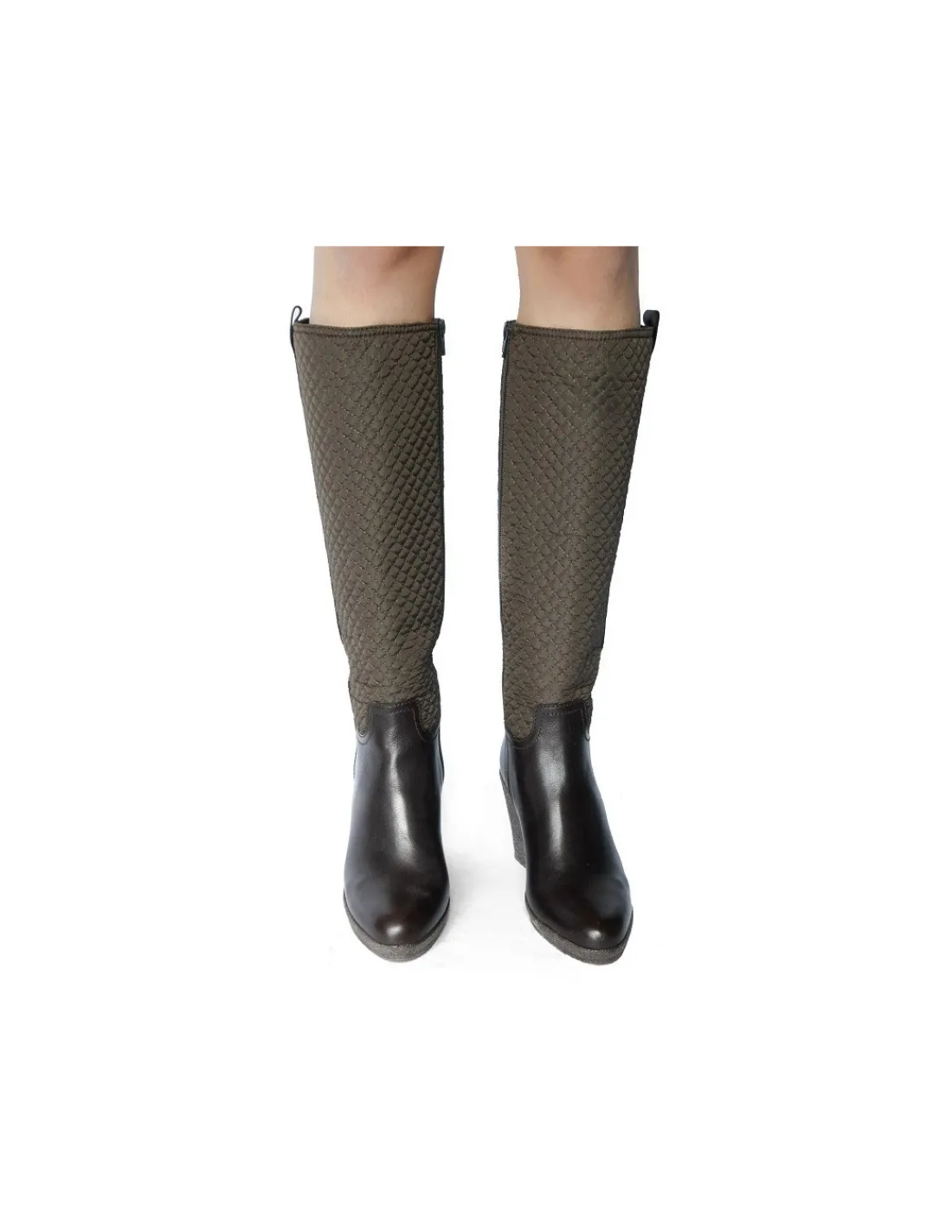 Cholewka w dolnej części wykonana ze skóry bydlęcej, licowej w kolorze brązowym, miękka i mięsista. Wewnątrz wkładki i futrówki wykonane są w całości z naturalnej skóry. Forma nosków migdałowa nieco wysmuklona, szeroka . Cholewki zapinane są na zamek od strony przyśrodkowej na całej swojej długości.
