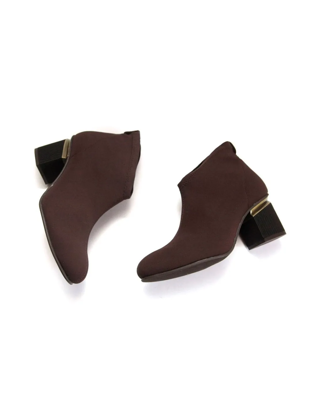 Zewnętrzna warstwa wykonana z tkaniny technicznej z domieszką stretchu w kolorze brązowym. Tkanina posiada oznaczenie waterproof, a więc nie przemaka. Cholewka składa się z dwóch części – przez środek noska przebiega stebnowany szew, aby na wysokości kostki (nad podbiciem) obie jej części mogły rozejść się w kształt litery V – To niebywale praktyczny zabieg , który optycznie wydłuża nasze nogi – pożądany efekt smukłości w gratisie 😉
