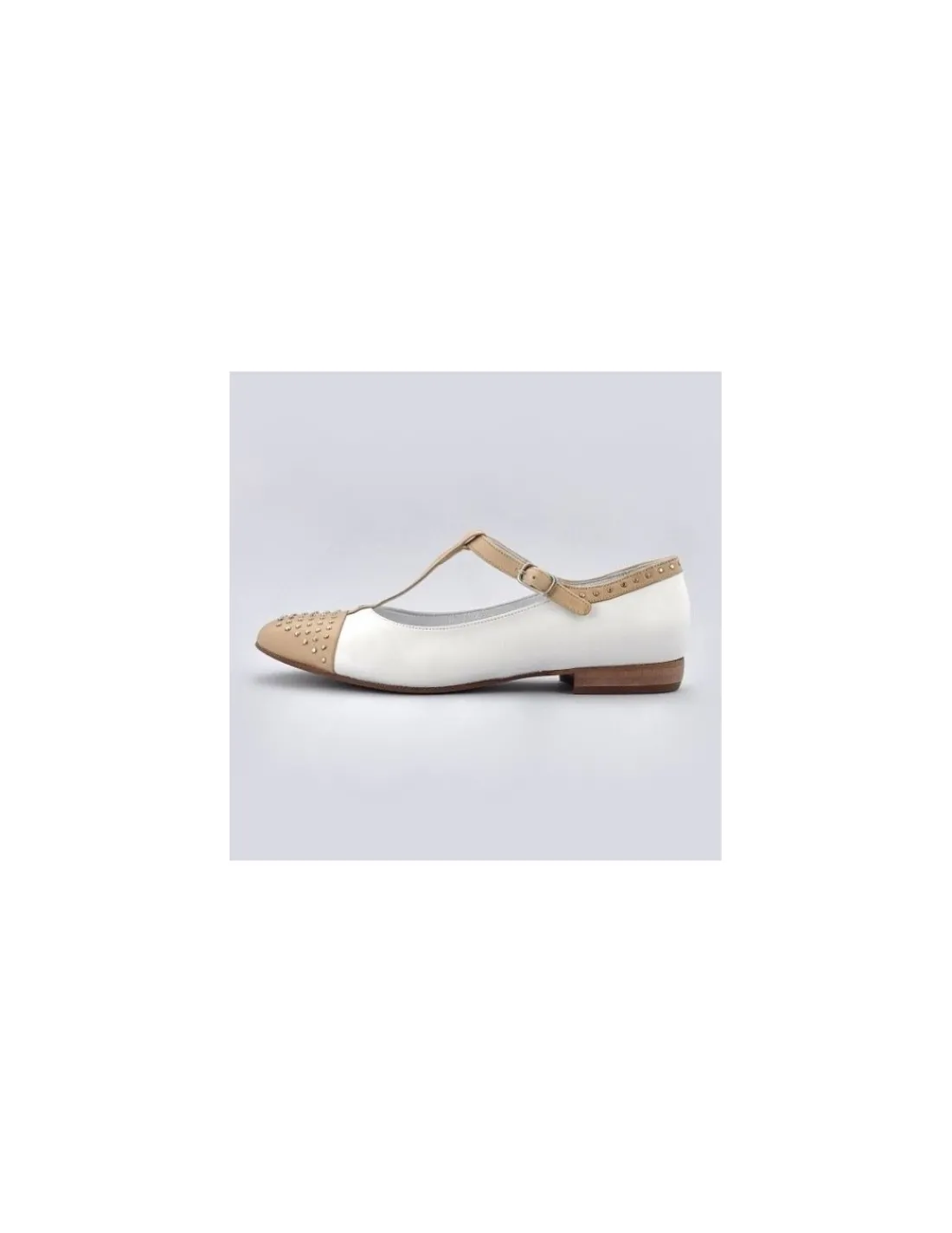 Zostały wykonane z doskonałej jakości, miękkiej, cielęcej skóry licowej. Skóra łatwo pracuje i dopasowuje się do stóp. Kolor mleczna biel (ecru), paseczki i nosek w kolorze, który znika na nogach bowiem zlewa się z kolorystyką naszej skóry. Forma balerinek nieco wysmuklona, noski okrągłe , ozdobione metalowymi, malutkimi, srebrnymi ćwiekami – podobnie zapiętki. To bardzo delikatna ozdoba, podkreśla charakter tego modelu, i nie jest nachalna. Wewnątrz wkładki i futrówki również ze skóry cielęcej w srebrnym kolorze .