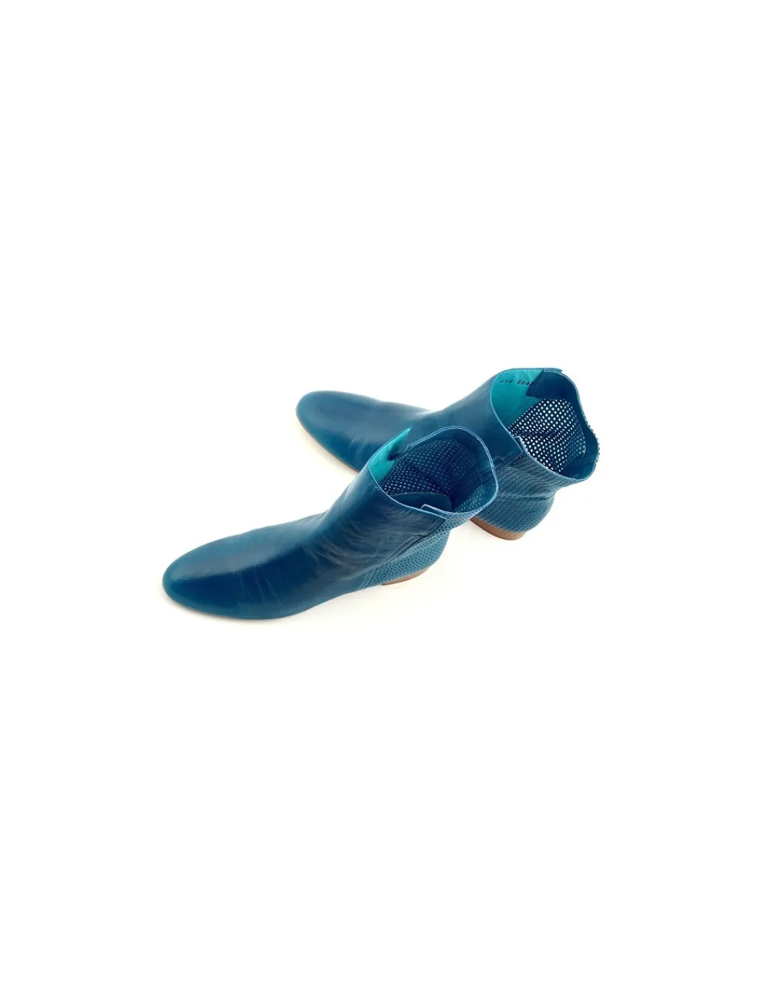 Futrówki w przedniej części botków skórzane, błękitne podobnie jak i wyściółki. Jest to typowo przejściowy model botków miedzy sandałami, a kozakami lub kozakami, a sandałami. Wiele z nas zwyczajnie lubi ten rodzaj butów które doskonale wpisują się dziś w nasze casual -owe życie.