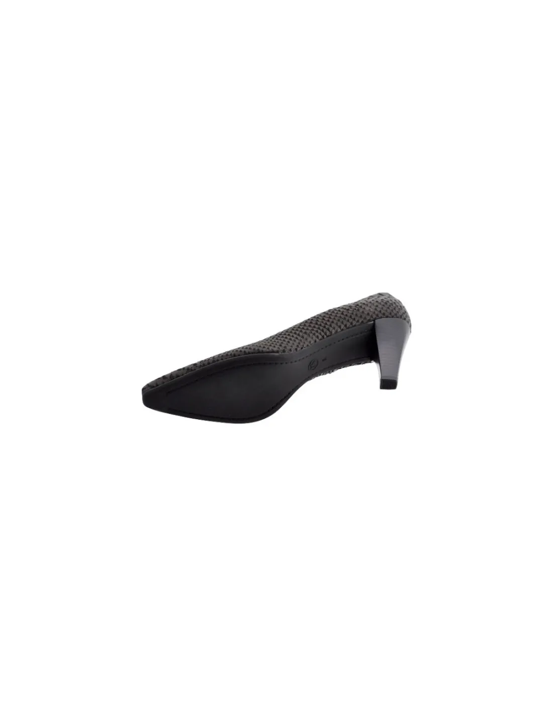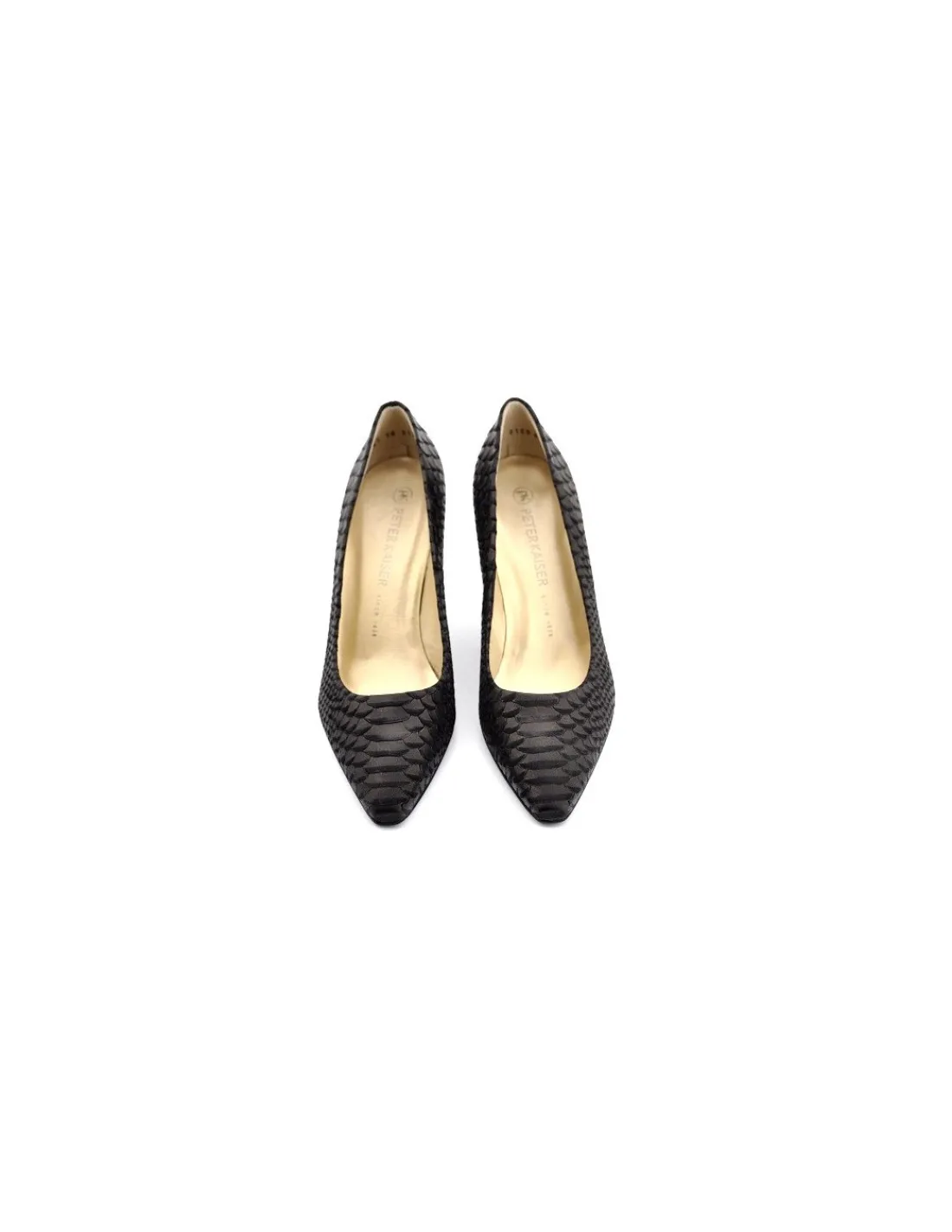 Czółenka wykonane z naturalnej skóry licowej wytłoczonej na wzór wężowej łuski o bardzo szlachetnej, matowej strukturze w czarnym kolorze. Skóra ta jest wyjątkowo miękka i dzięki temu świetnie dopasowuje się do stóp.
