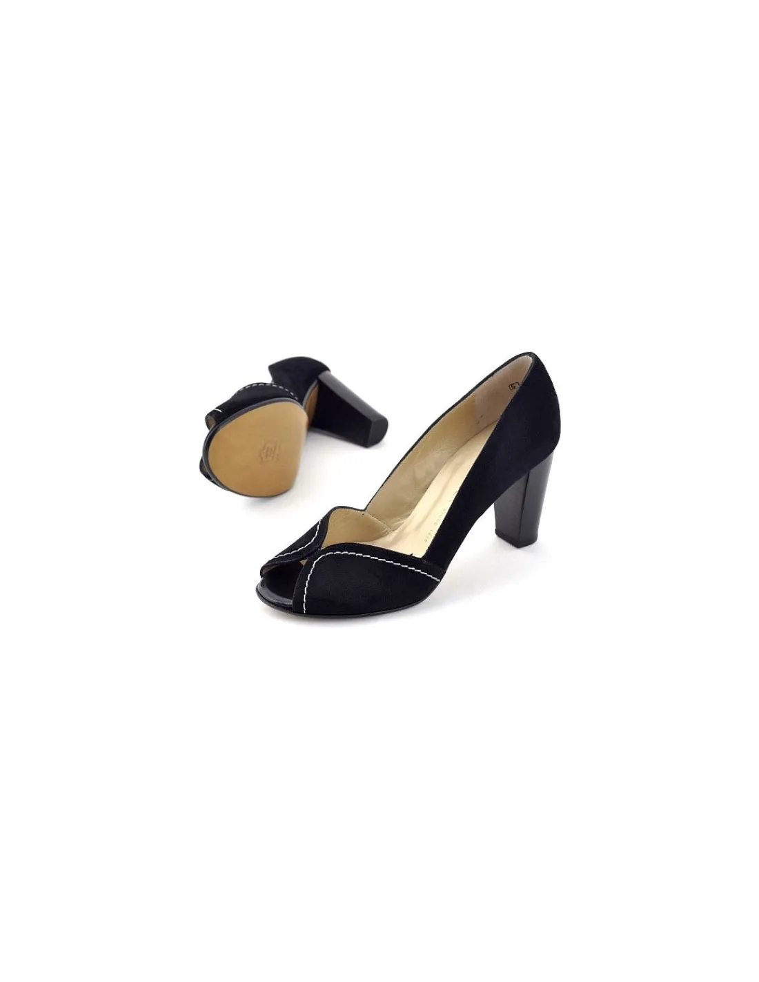 Obcas prosty, stabilny z pełnym podparciem pięty, niezwykle komfortowy jak na tą wysokość, popularnie zwany „słupkiem”. Zelówki z naturalnej skóry.