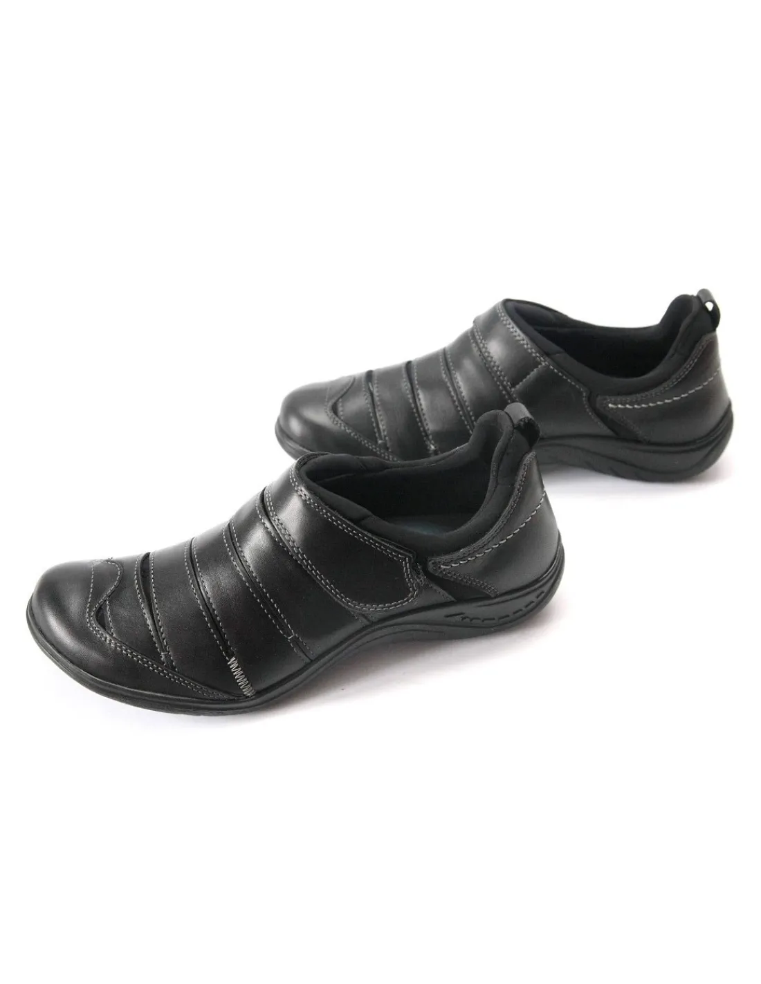 Te niewiarygodnie komfortowe półbuty zostały wykonane z najwyższej jakości, czarnej skóry licowej. Pod wierzchnią warstwą skóry znajduje się dodatkowa rozciągliwa tkanina neopren.