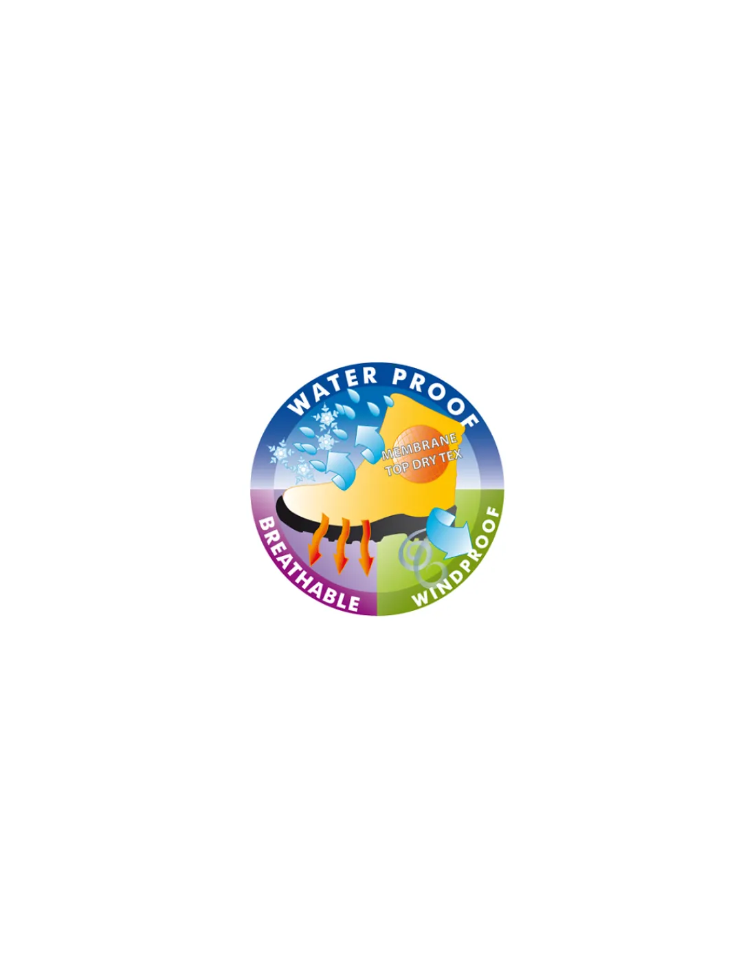 Pomiędzy wierzchnią warstwą skóry, a futrówką jest membrana Top-Dry-Tex co gwarantuje wodoszczelność i wiatroszczelność z optymalną oddychalnością tego modelu. W obuwiu z membraną ważne jest stosowanie skarpet wełnianych lub Coolmax lub outdorowych ! Tylko ich skład i właściwości umożliwiają działanie przekaźników i membrana przechwytuje wilgoć, przekazując ją na zewnątrz.