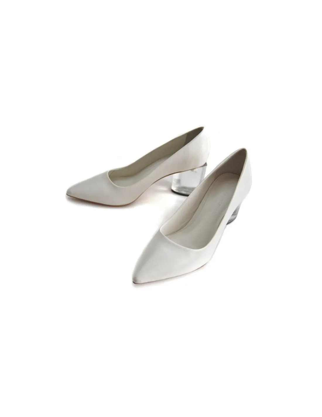 Do produkcji tych wyjątkowych, transparentnych, prawie przezroczystych obcasów, firma Pani Terezy Gureg korzysta z naturalnego kauczuku. Obcasy odlewane i mocowane są ręcznie jako unikatowe, niepowtarzalne dzieła sztuki. W przezroczystym kauczuku widać metalowy śrubunek łączący obcasy z zelówkami i resztą czółenek. Czasem też widoczne są pęcherzyki powietrza. Każda para jest inna. W tym przypadku obcasy maja podstawę prawie jak nieco zaokrąglony trójkąt. Ma trzy boki i uzyskany efekt jest za każdym razem inny, a to w zależności od strony i ułożenia stóp.