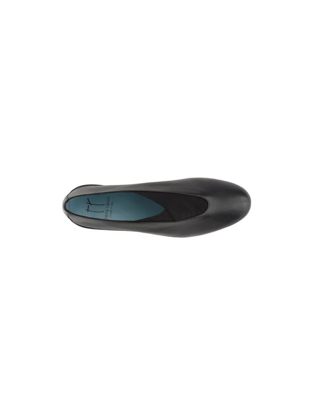 Wykonane z selekcjonowanych skór, a ten model z licowej skóry – nappa z delikatnym, satynowym połyskiem w czarnym kolorze. Forma dość szeroka ergonomiczna , a noski podwyższone zaokrąglone. Cholewka wysoko zabudowana i zamknięta krzyżującym się na wysokości podbicia stretchem, pozostawiając efekt jaki daje dekolt w szpic.