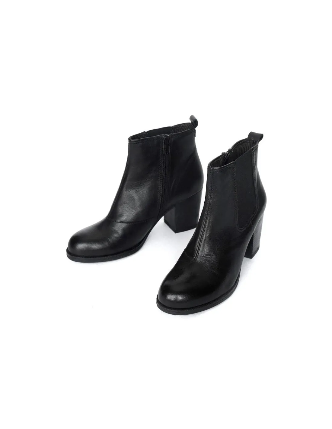 Botki te z całą pewnością należą do grupy klasyków, proste, komfortowe, praktyczne i bardzo zgrabnie prezentują się na stopach. Wykonane są z miękkiej skóry bydlęcej, licowej w kolorze czarnym.
