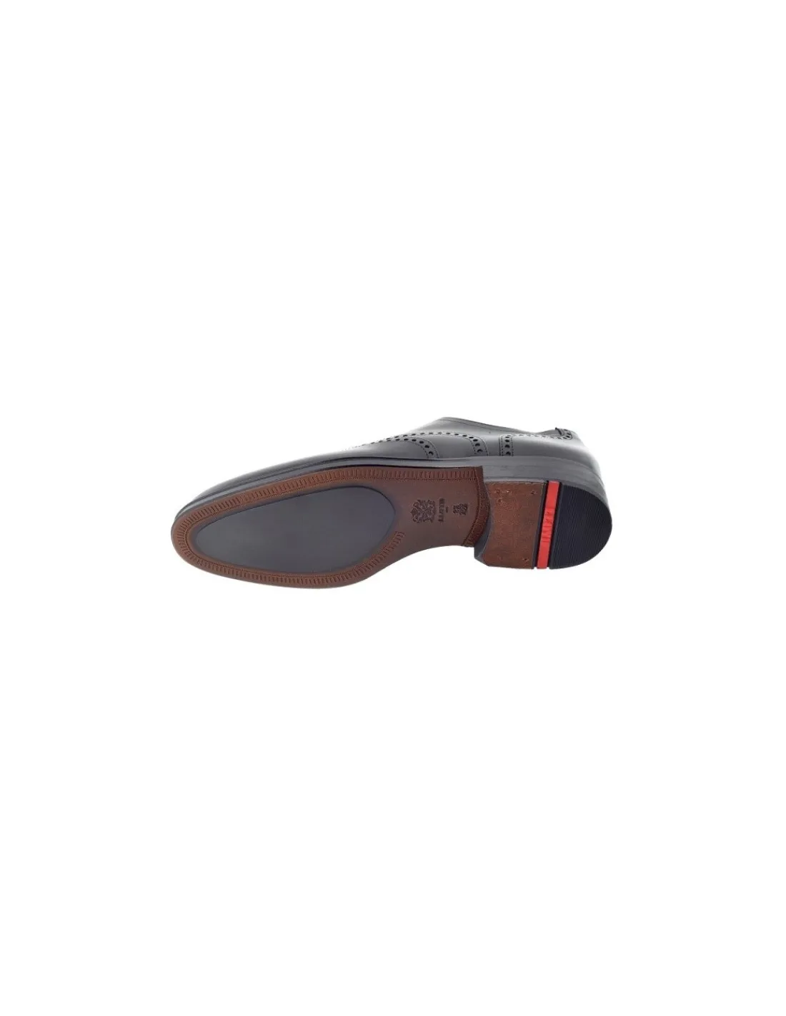 Wykonane z selekcjonowanych skór – miękkiej, czarnej skóry bydlęcej która świetnie dopasowuje się do kształtu stóp nie zmieniając formy butów. Na noskach znajdują się przeszycia, oraz perforacja w kształcie rozety z użyciem dwóch wielkości otworów, a na cholewce przeszycia i dziurkowania sięgają w formie skrzydełek do pięty. Forma półbutów ergonomiczna okrągła, dość szeroka – z łatwością mieści palce stóp. Buty wykonane na takim kopycie mają więcej miejsca na palce. Wewnątrz zarówno futrówki jak i logowane wyściółki wykonane są również ze skóry.