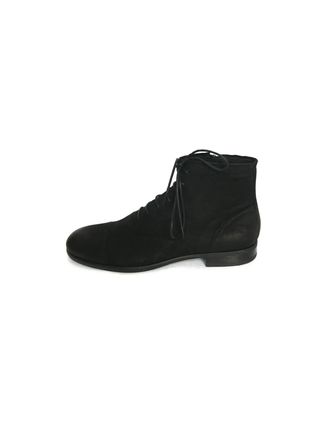 Męskie skórzane półbuty – trzewiki powyżej kostki – dla Dandysa. Czarne, nubukowe – ze skóry bydlęcej w stylu city casual. Nubukowa skóra jest bardzo miękka. Na noskach i piętach antykowana czyli postarzana dodając butom efektownego stylu vintage.