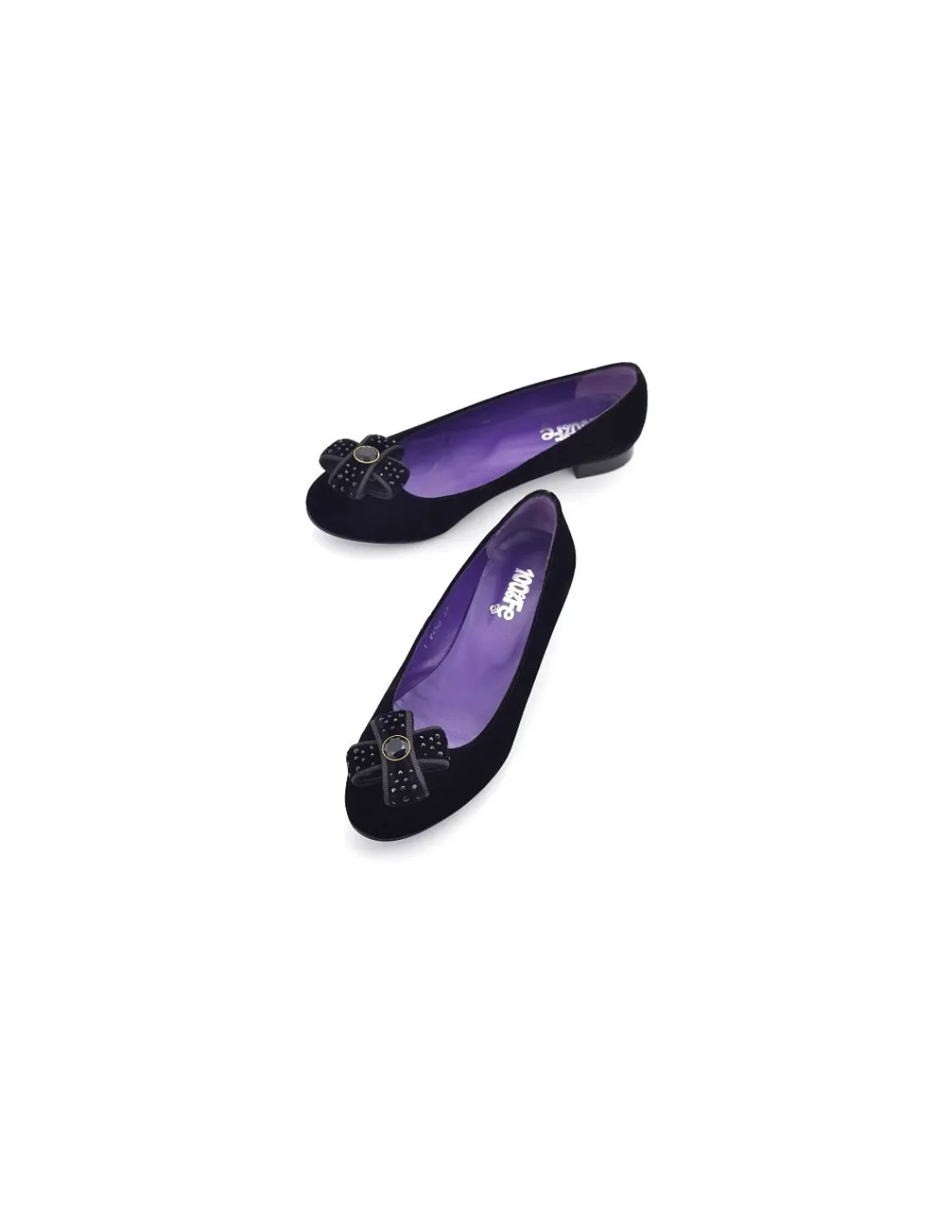 Ten model został wykonany ze szlachetnego, czarnego weluru. Jak na welur przystało, posiada delikatny połysk. Na noskach niezwykle efektowna ozdoba – rozeta wysadzana kryształami Swarovski w kolorze czarnym.