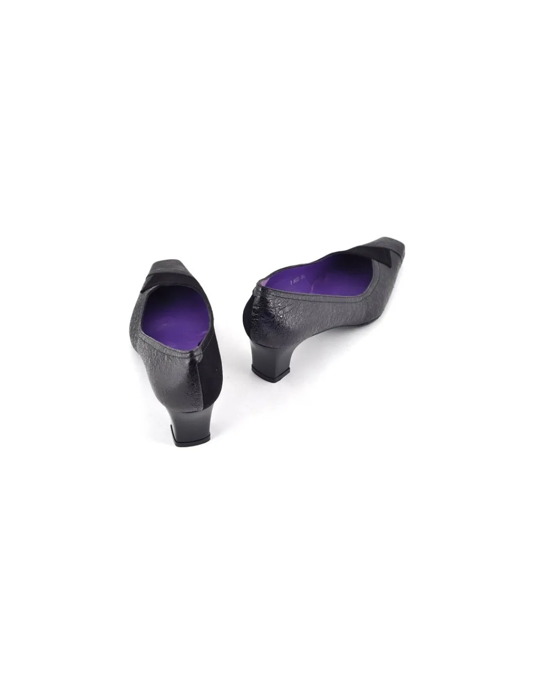 Te czółenka wykonane są ze skóry zamszowej w kolorze czarnym, oraz czarnej, metalicznej, strukturalnej skóry nazwanej przez producenta „precioso „. Swoją fakturą przypomina drobno potłuczone szkło. Błyszczy się jednak matowo, szkoda, że tego nie oddają załączone fotografie.