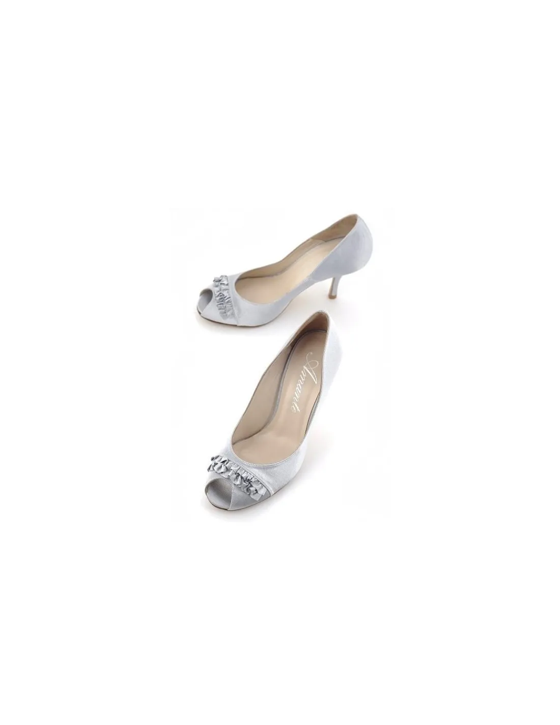 Piękna, kobieca linia czółenek pozostająca w grupie klasycznego przedstawiciela, najstarszego gatunku damskiego obuwia, czyli czółenek. Na stopach prezentują się delikatnie i bardzo kobieco. Z jednej strony minimalistyczna forma w połączeniu maleńką falbanką nieco powyżej open toe w delikatnym kolorze szaro – srebrnym dyskretnie przykuwa uwagę.