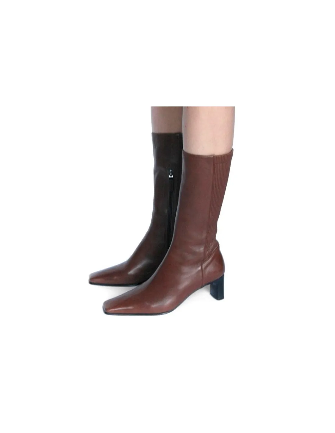 Kozaki wykonane są niezwykle efektownie, z najwyższej jakości, aksamitnej w dotyku skóry licowej. Skóra jest miękka, bardzo plastyczna, kolor jasno – brązowy. Wnętrze również ze skóry licowej.