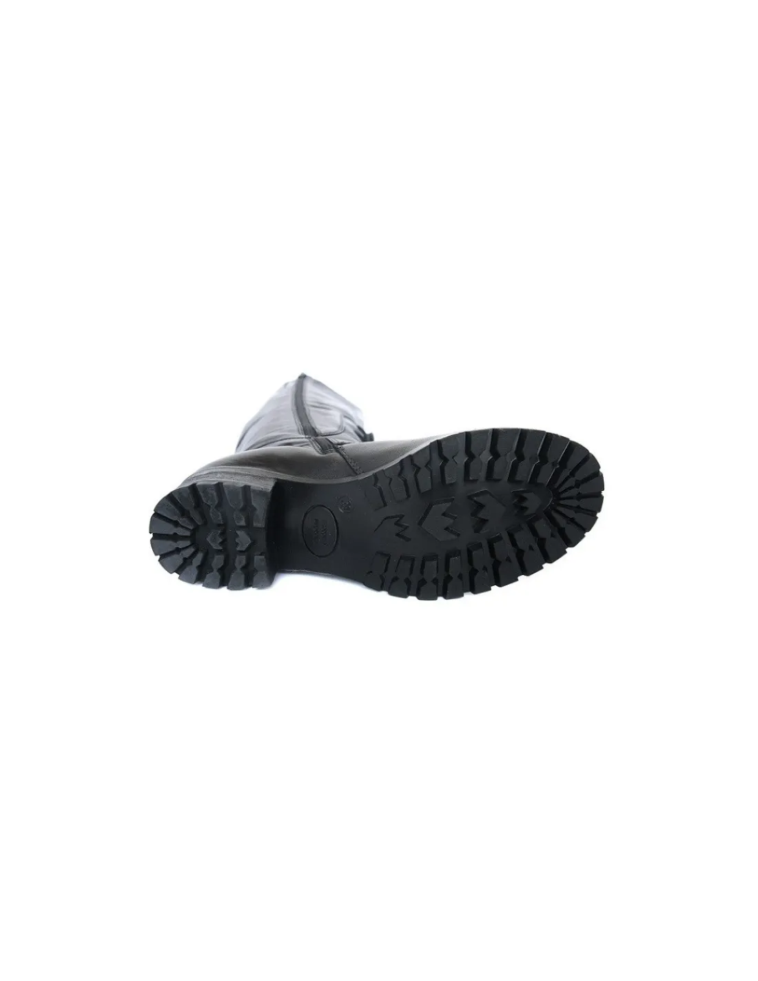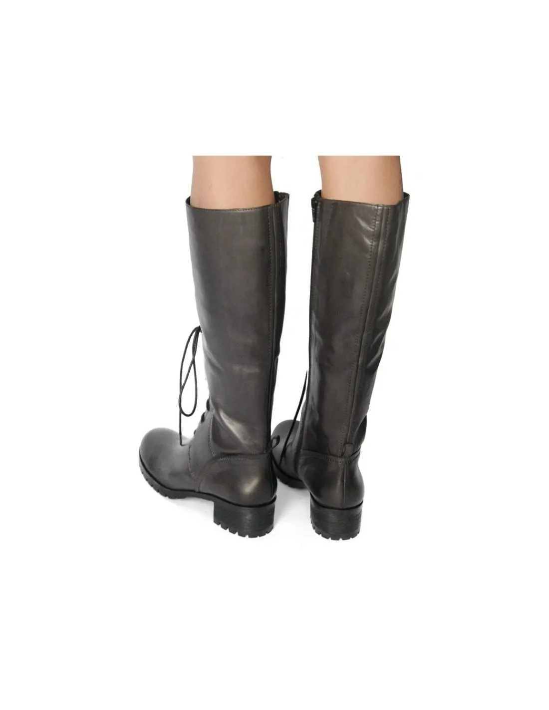 Kozaki wykonane z miękkiej skóry licowej, bydlęcej w kolorze szarym, asfaltowym . Skóra patynowana , antykowana na noskach i piętach co daje ciekawy i bardzo pożądany w dzisiejszej modzie efekt vintage.