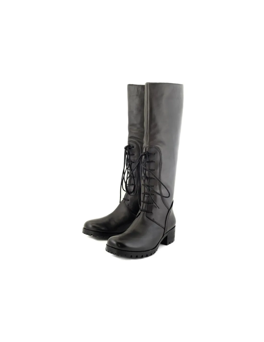 Cholewka zapinana na zamek po stronie przyśrodkowej. W górnej części cholewki obok zamka, estetycznie zamaskowana gumowa wstawka, która daje rozciągliwość +/- 1,5 cm cholewki to istotne zwłaszcza w początkowym okresie użytkowania. Wewnątrz futrówki i wkładki w całości wykonane ze skóry.