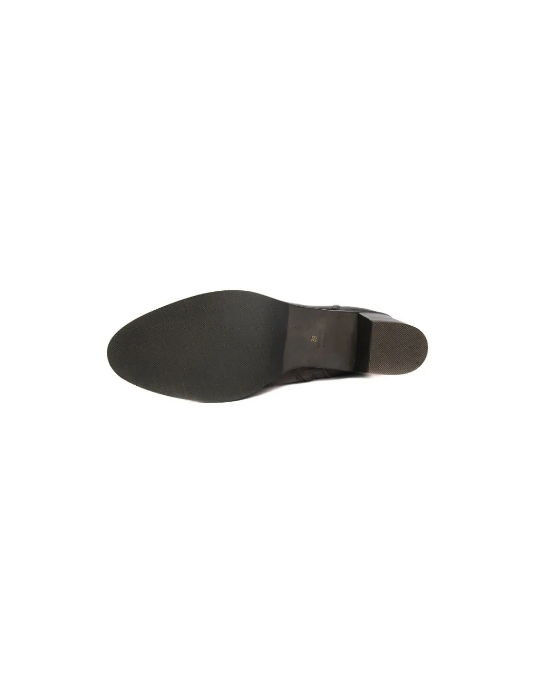 Ułatwia zginanie kolan podczas chodu z uwagi na wysokość cholewek. Obcasy w komfortowej formie klocków bardzo stabilne. Również brązowe, w skórzanych obłogach. Zelówki z elastycznego, dość grubego tworzywa, chropowate – antypoślizgowe tak samo jak fleki.