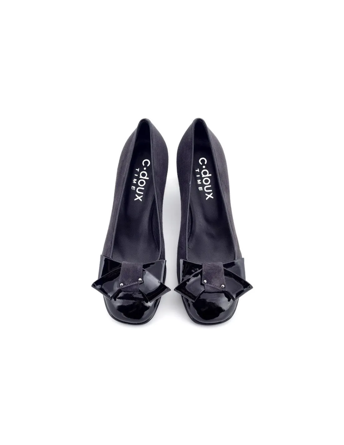 Wykonane zostały z ogromna precyzją z najwyższej jakości, skóry zamszowej w kolorze grafitowym. Wykończenie wokół wycięcia cholewki, nosek, oraz kokarda zostały wykonane z czarnej skóry lakierowanej. Są świetnie wyprofilowane, komfortowe. Czółenka zdecydowanie nadają się do intensywnego, całodziennego użytkowania. Noski okrągłe, podniesione. Wewnątrz logowane wyściółki i futrówki również skórzane.