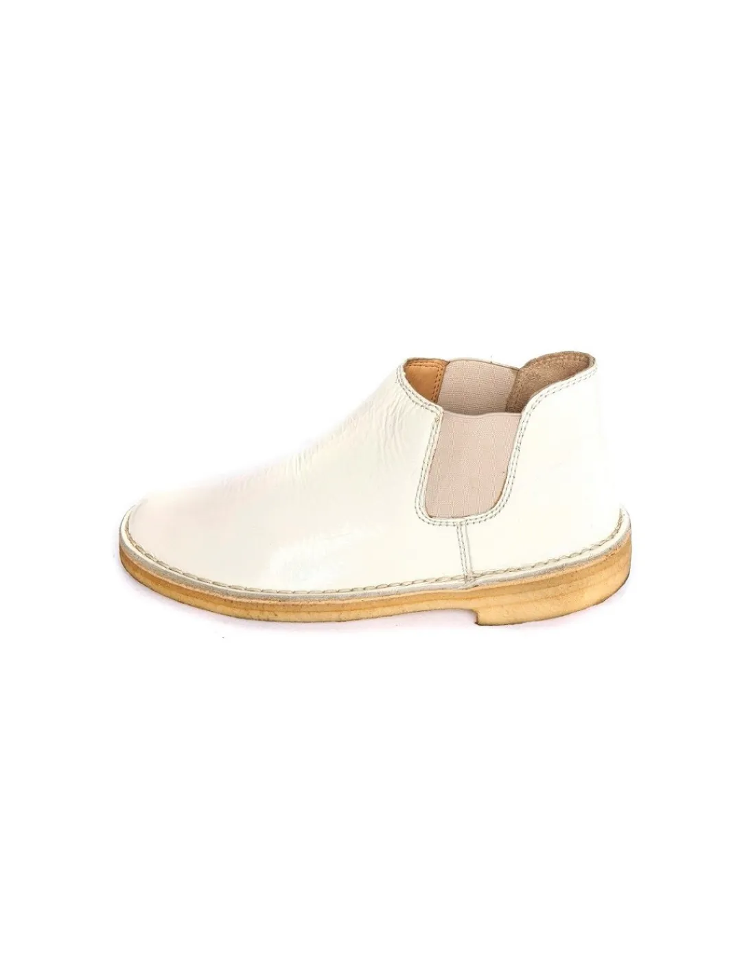 Linia Chelsea to klasyka w kolekcji marki Clark’s Original’s. Wygodne i bardzo praktyczne buty, są obecnie kultowym modelem wybieranym przez wszystkich wielbicieli komfortu i mody casual. Te sztyblety wykonano ze skóry lakierowanej cracle w kolorze mleka. Lakierowana w ten sposób „luźna” skóra jest bardzo miękka.