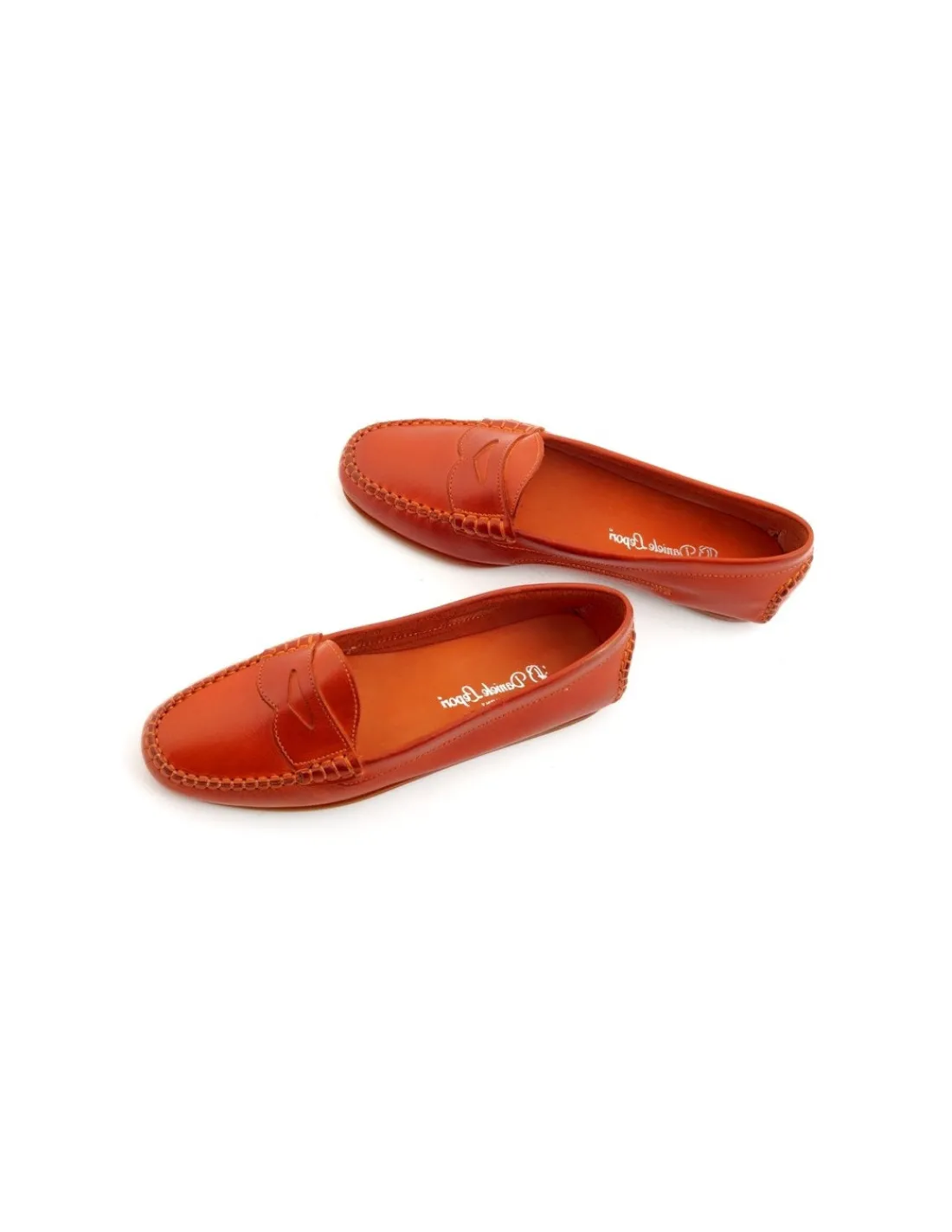 Wykonane są z jednego kawałka naturalnej skóry bydlęcej w kolorze pomarańczowym. Jest ręcznie barwiona, antykowana już po zakończeniu procesu produkcyjnego.Te mokasyny nie posiadają futrówek, wierzchnia część cholewki jest pojedynczą skórą, a wnętrze to jej lewa strona. Takie rozwiązanie sprawia, że o wiele lepiej się dopasowują. Są po prostu miękkie. Wkładki również skórzane.