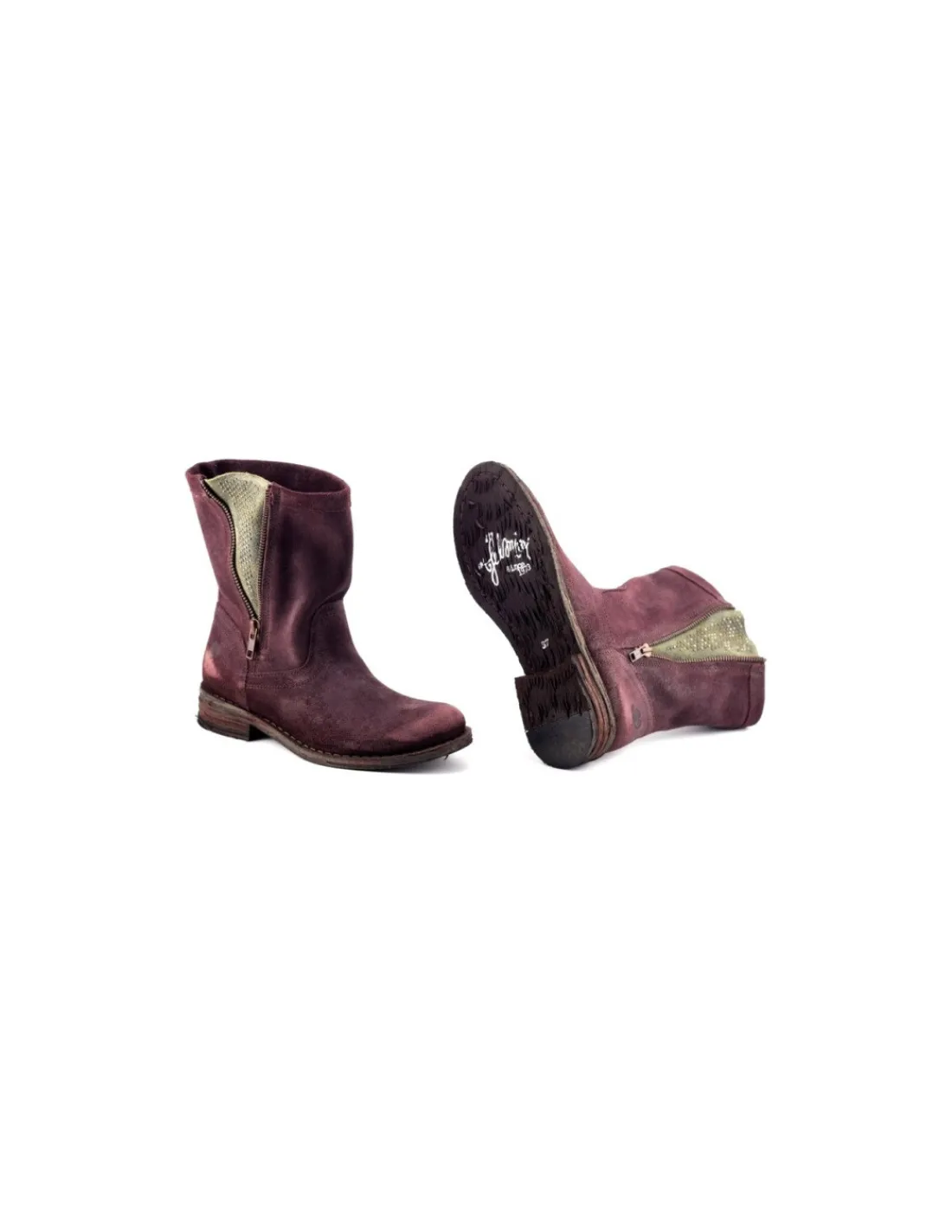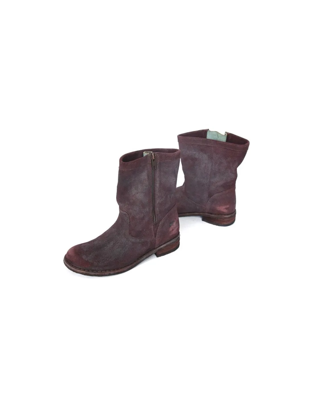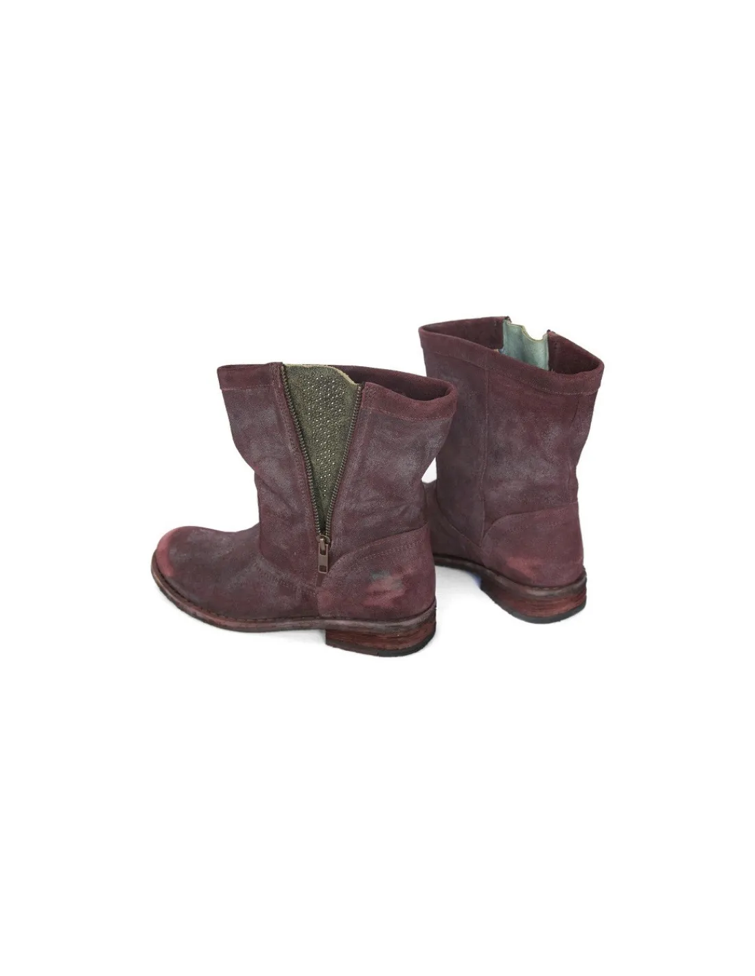 Botki typu chopper wykonane ze skóry zamszowej w kolorze burgund. Skóra z naturalnego zamszu, mięsista dość gruba, sztywna antykowana z efektem vintage co podkręca zadziorny charakter tej pary.