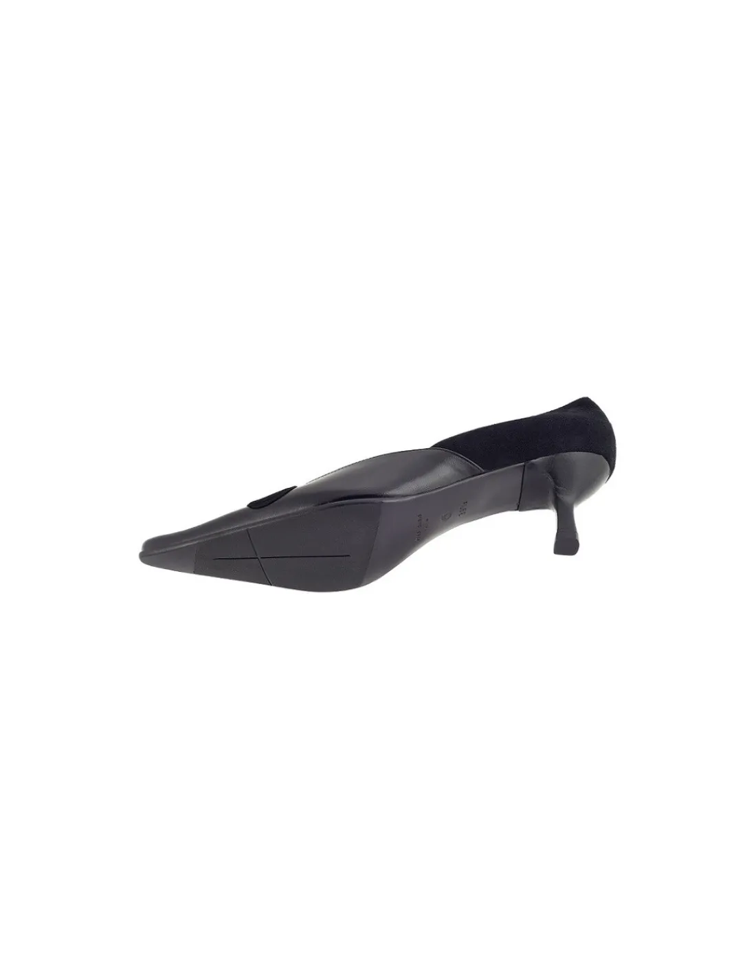 Klasyczne, a zarazem niezwykle kobiece i efektowne czółenka. Prostota i elegancja, ale z „pazurem”. Forma wysmuklona zakończona noskiem w szpic i efektownym rozwiązaniem wycięcia na wysokości podbicia. Zaprojektowane i wykonane z połączenia najwyższej jakości, czarnych skór – cielęcej licowej i naturalnej zamszowej. Skóry bardzo miękkie aksamitne w dotyku.