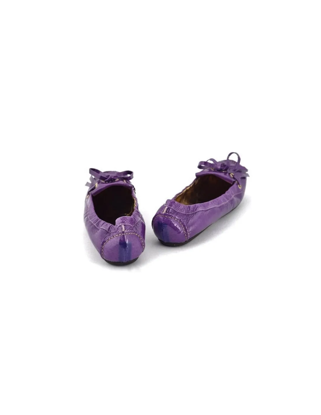 Miękka skóra lakierowana została metodą naplaku, czyli lakieru kładzionego na luźno położoną skórę. Dzięki tej technice buty są bardzo miękkie, skóra pracuje, a po włożeniu na stopę większość zgięć rozprostowuję się tworząc gładką powierzchnię z zachowaniem niezwykłej miękkości skóry. Fioletowy, jagodowy, ametystowy nasycony i soczysty, taki to mniej więcej ten kolor. To kolor, który z żadnym się nie pokłóci.
