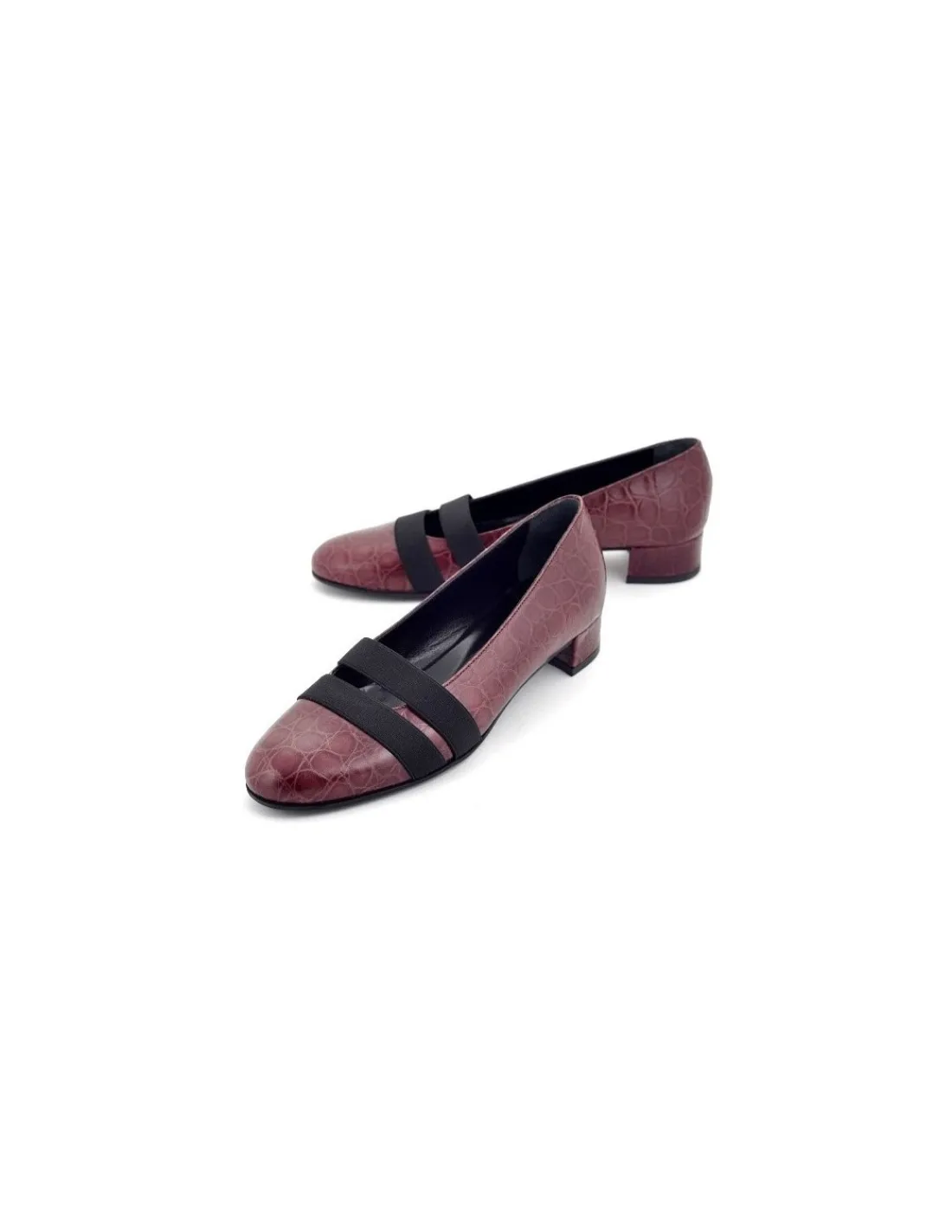 Zostały wykonane niezwykle efektownie z najwyższej jakości, miękkiej skóry licowej w kolorze bordo, wytłaczanej na wzór skóry krokodyla i polerowanej. Taki rodzaj skóry ładnie się „starzeje” powstające podczas użytkowania zagięcia w okolicy podbicia są praktycznie niewidoczne. Kolor należy do bestsellerowej grupy jesiennych wyborów.
